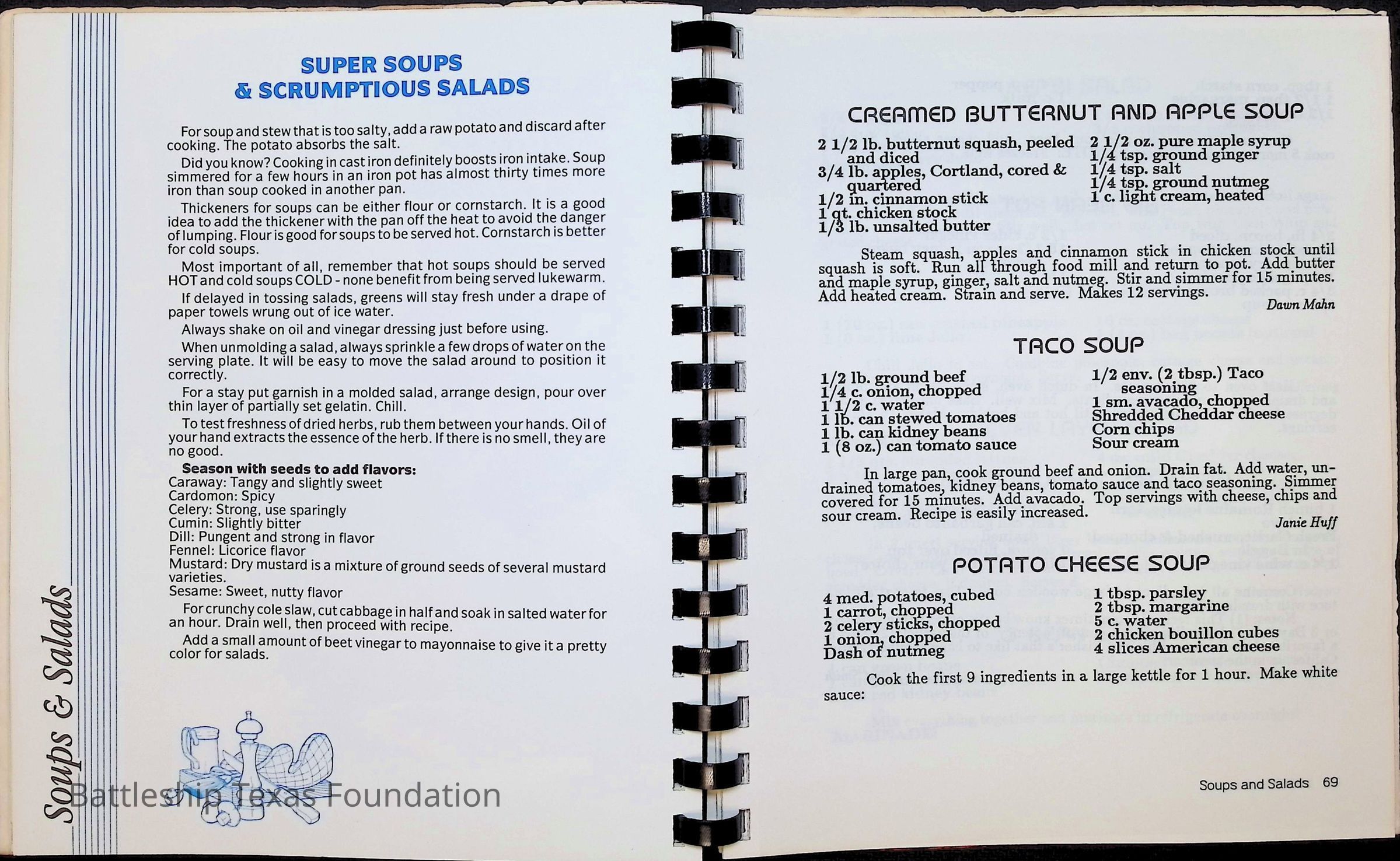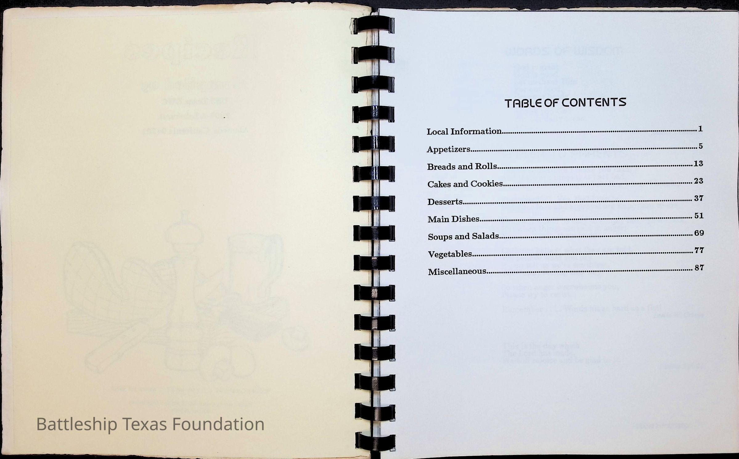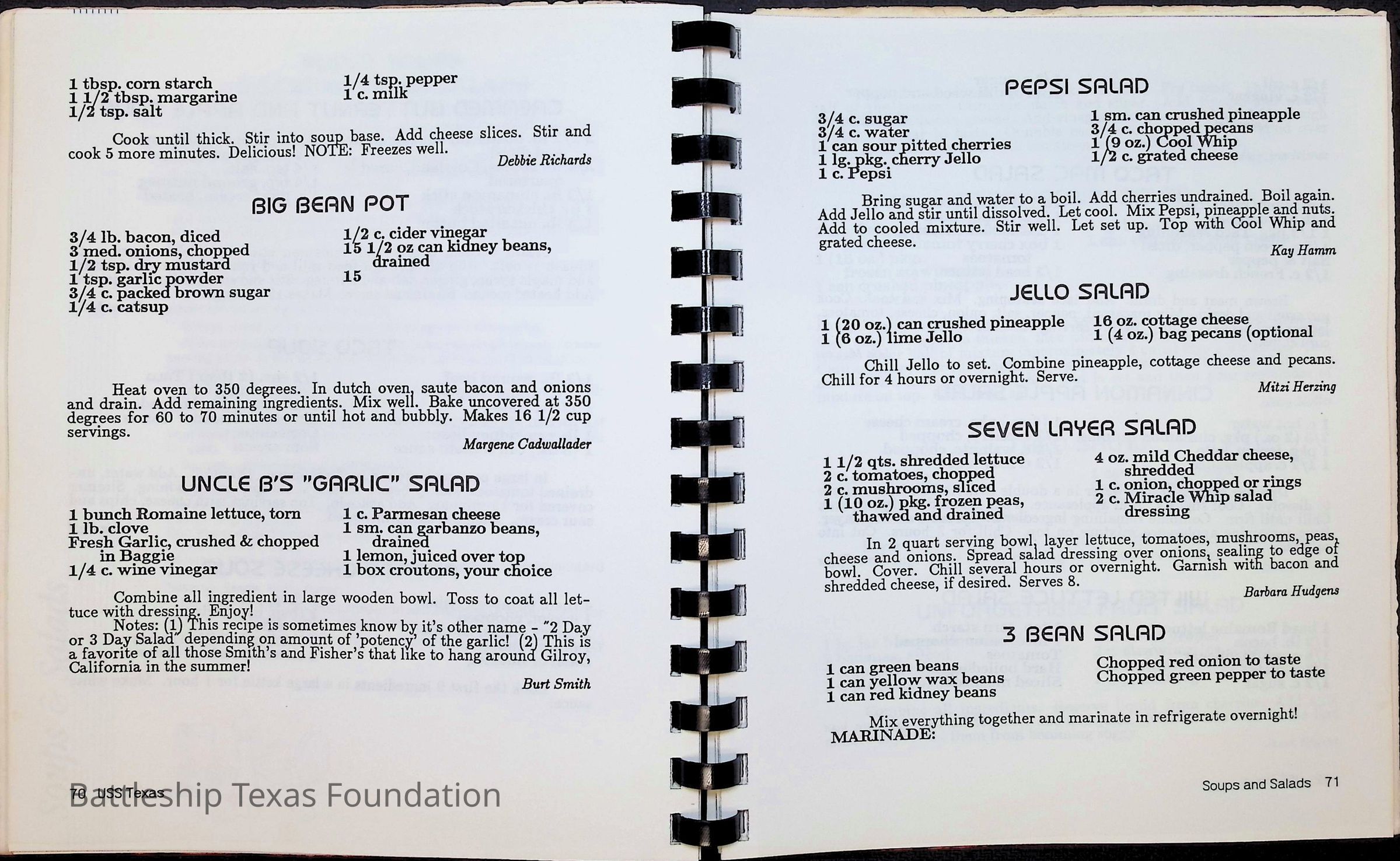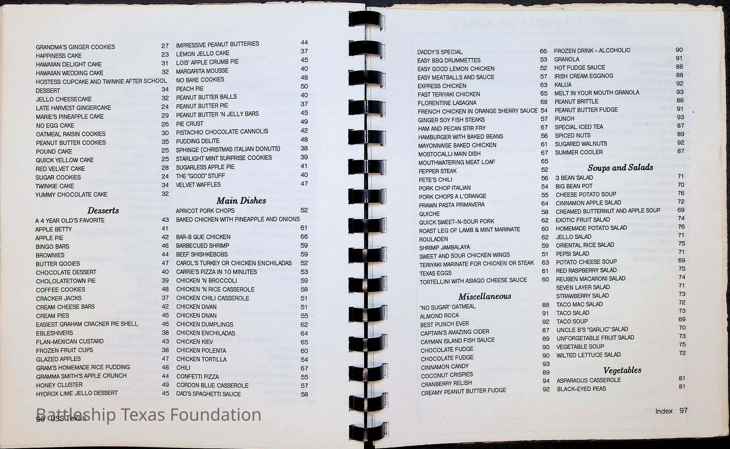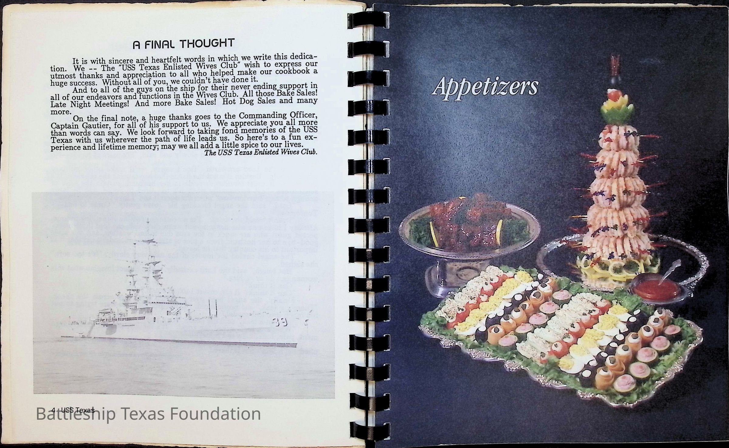 Cook book for the nuclear cruiser USS Texas (CGN-39). Yellow cover with rows of roses above title.