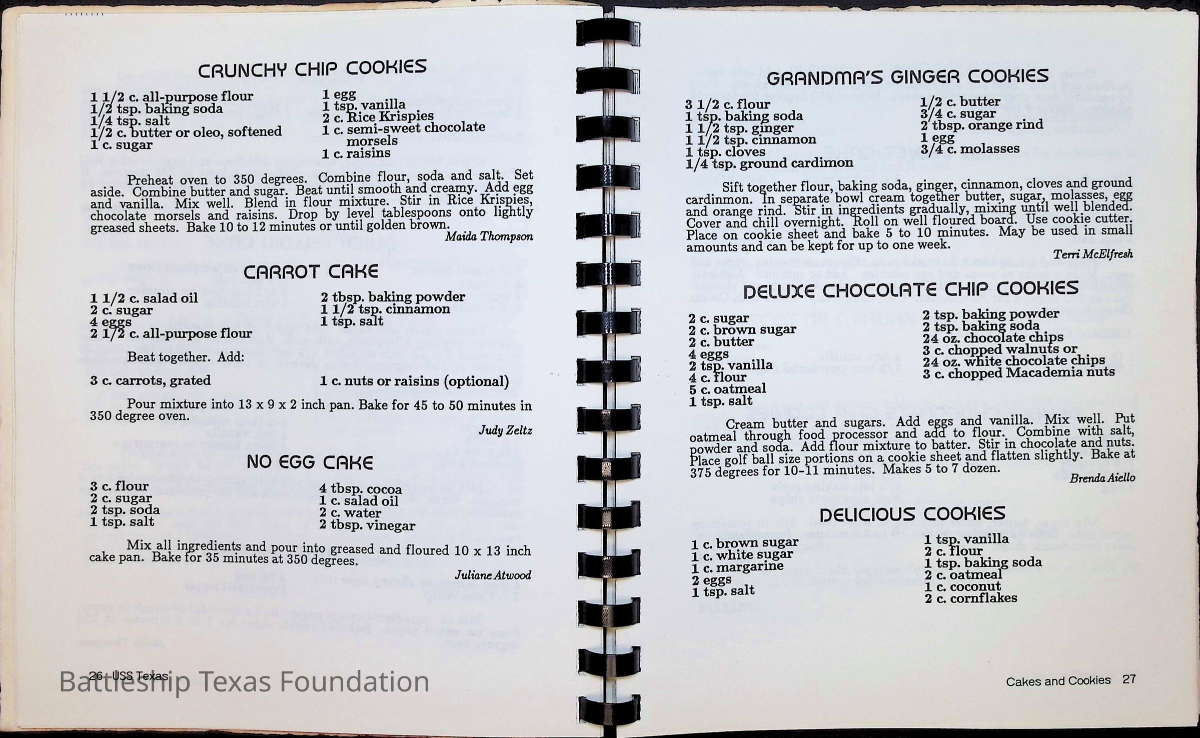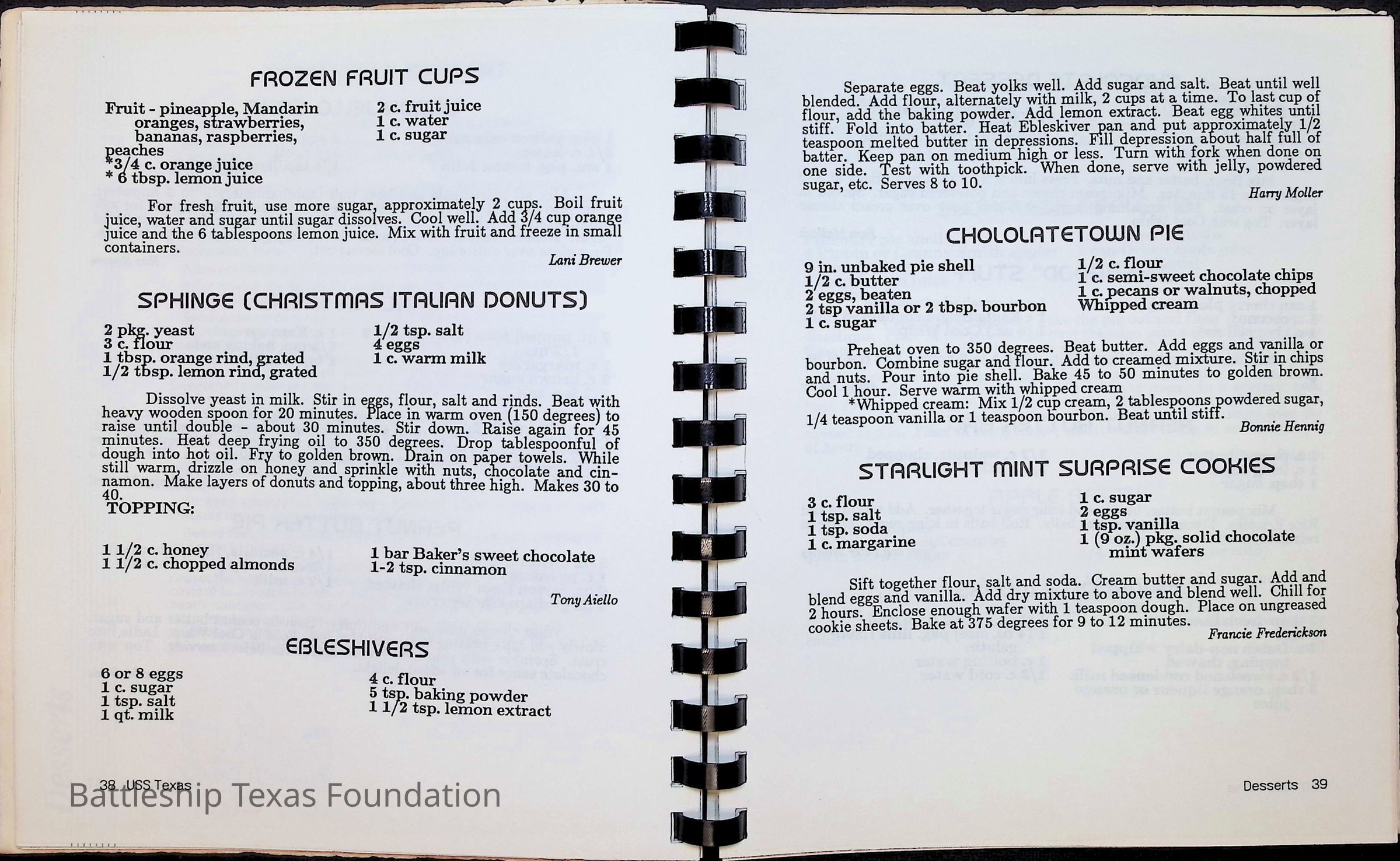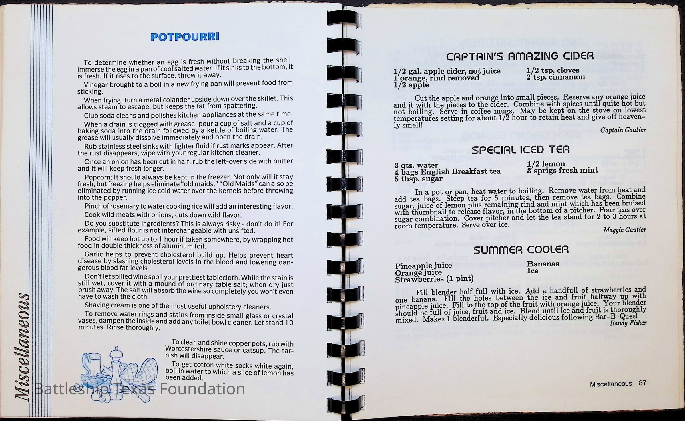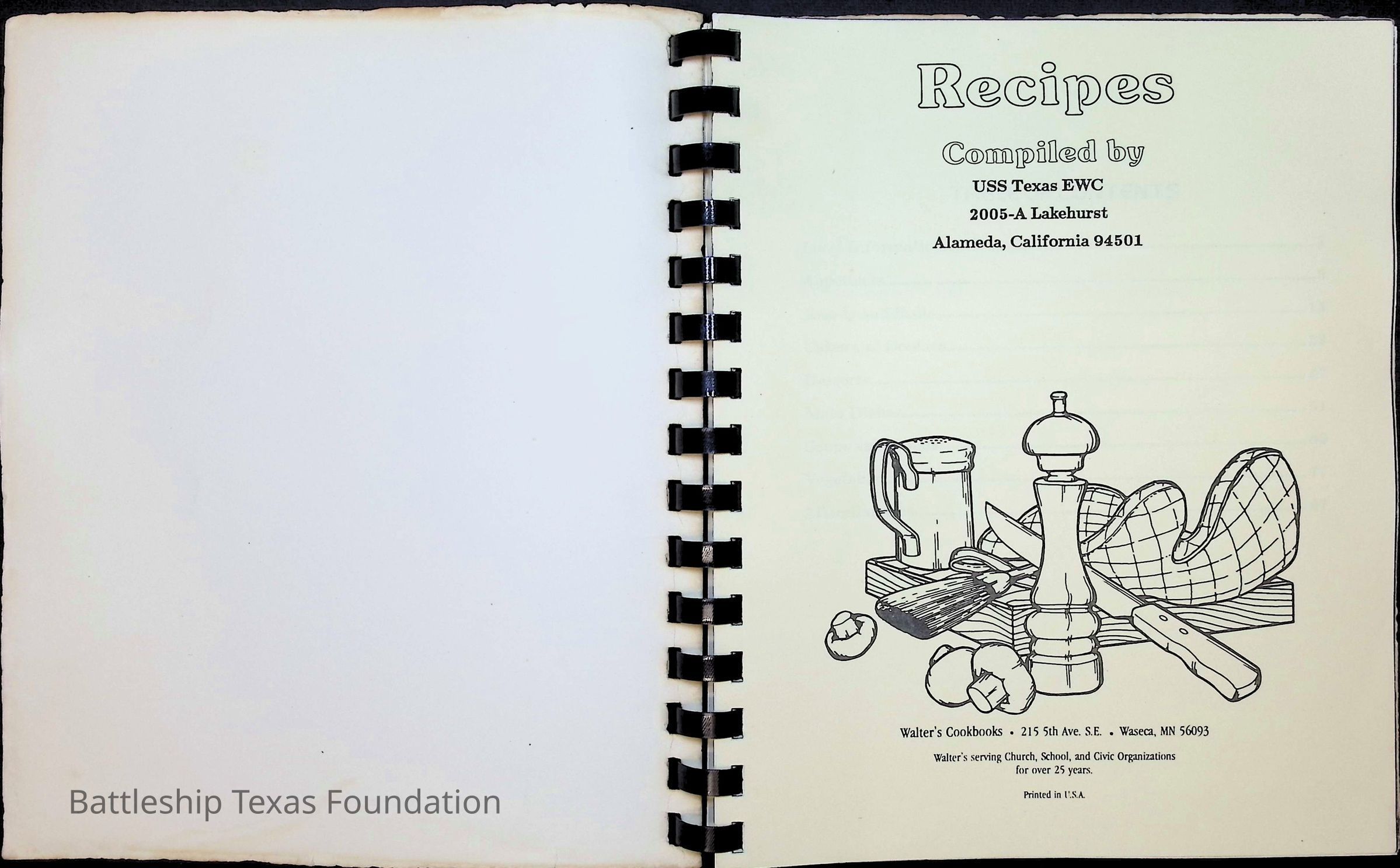 Cook book for the nuclear cruiser USS Texas (CGN-39). Yellow cover with rows of roses above title.