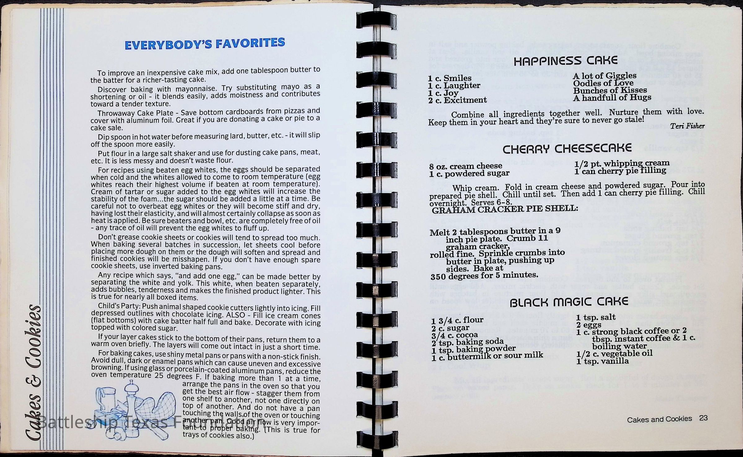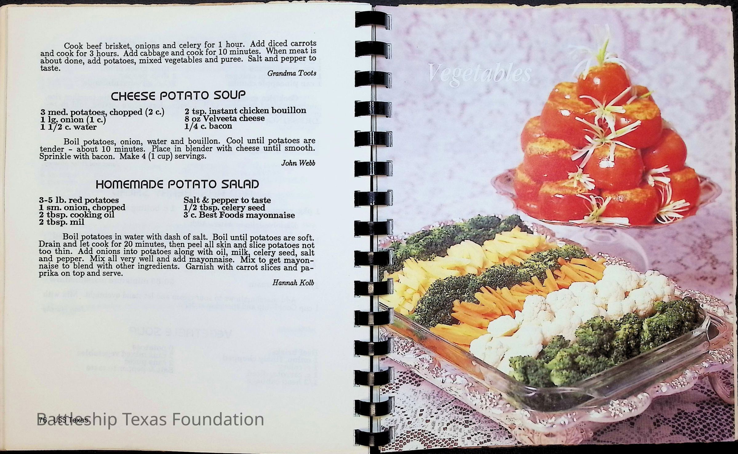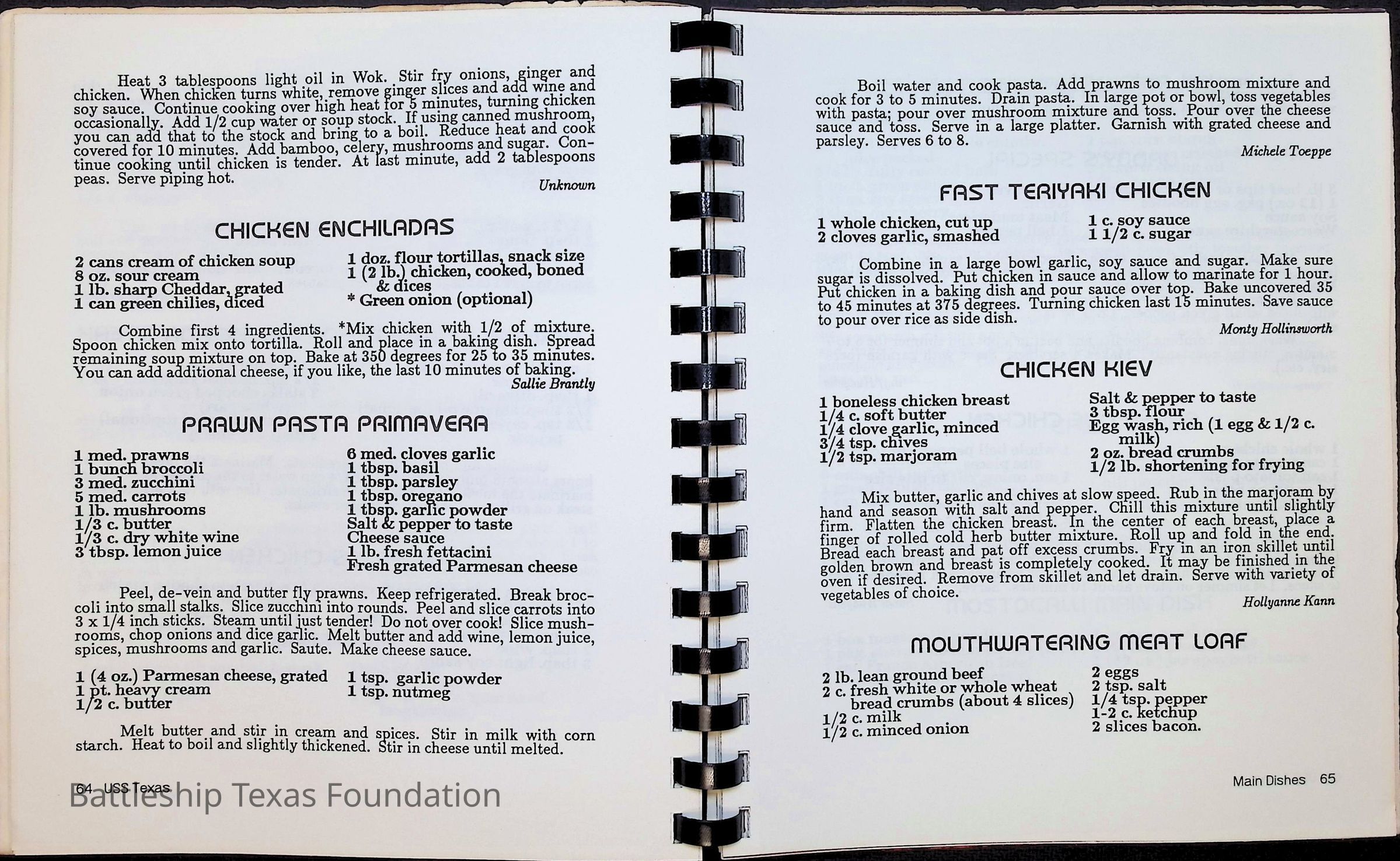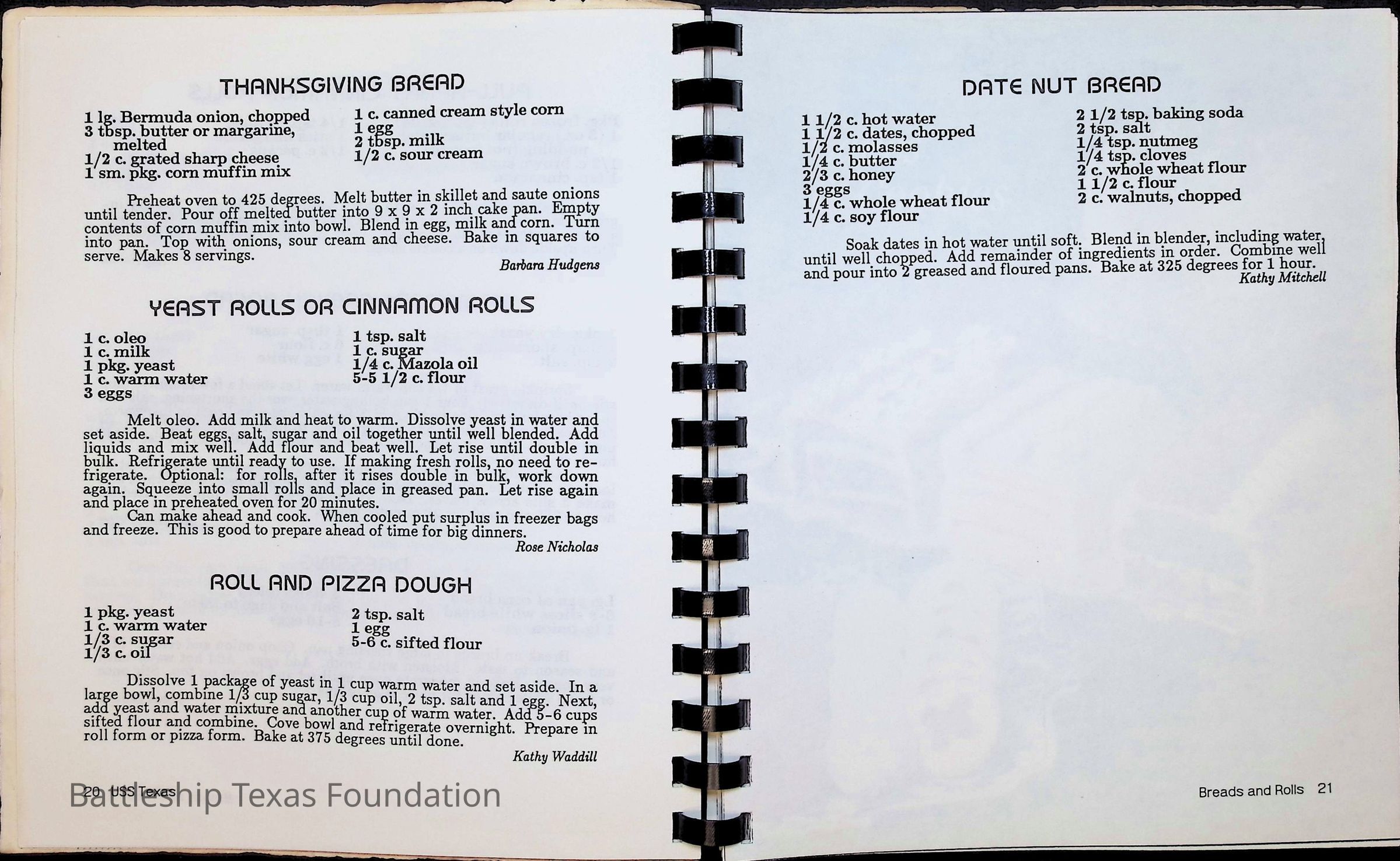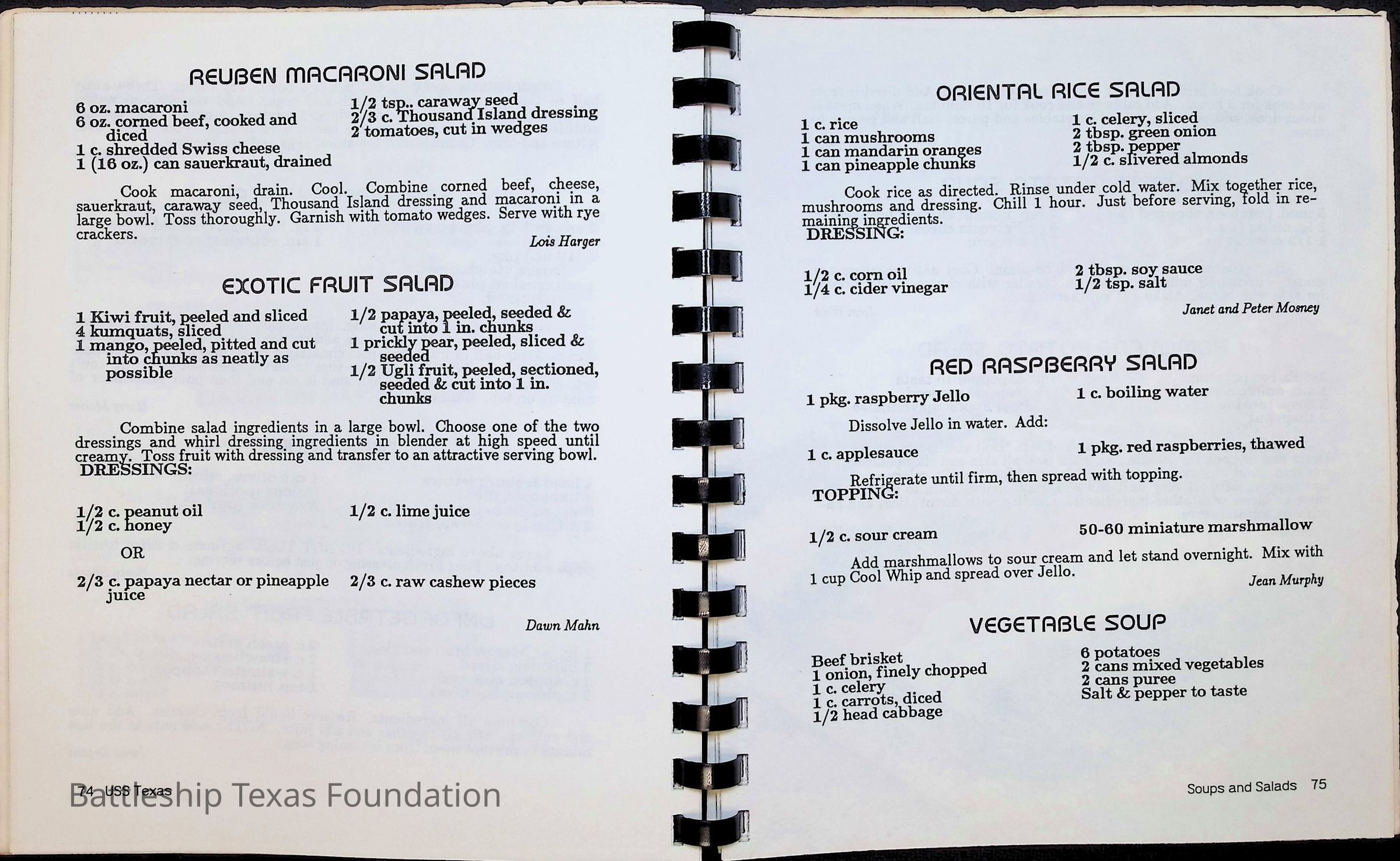 Cook book for the nuclear cruiser USS Texas (CGN-39). Yellow cover with rows of roses above title.