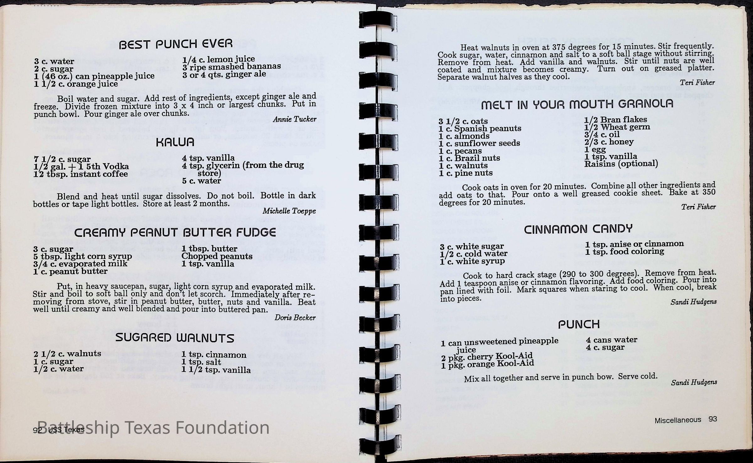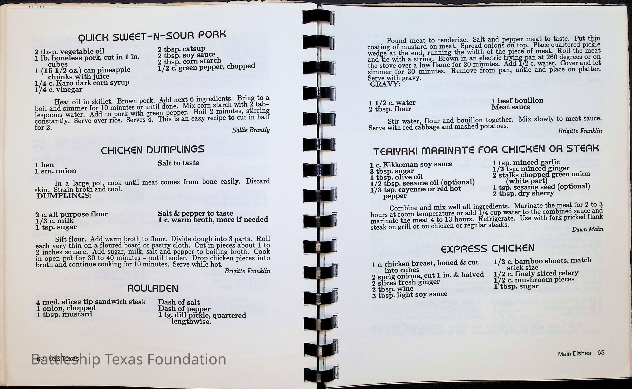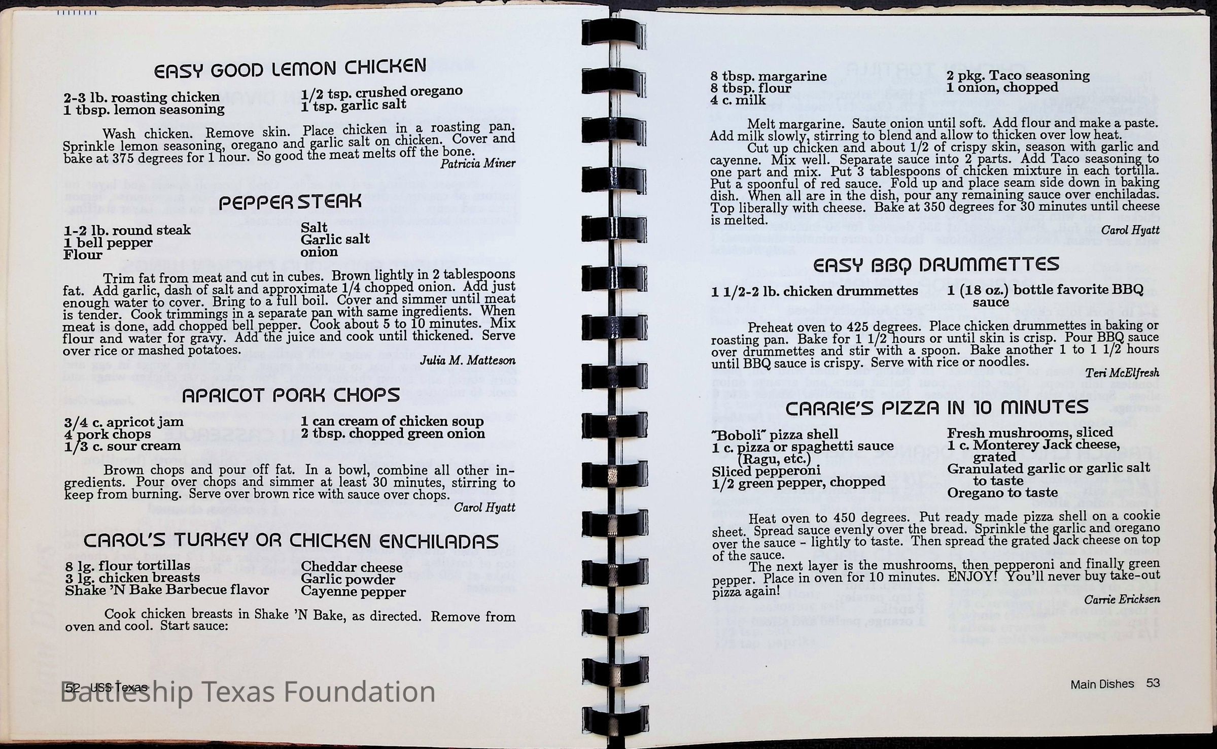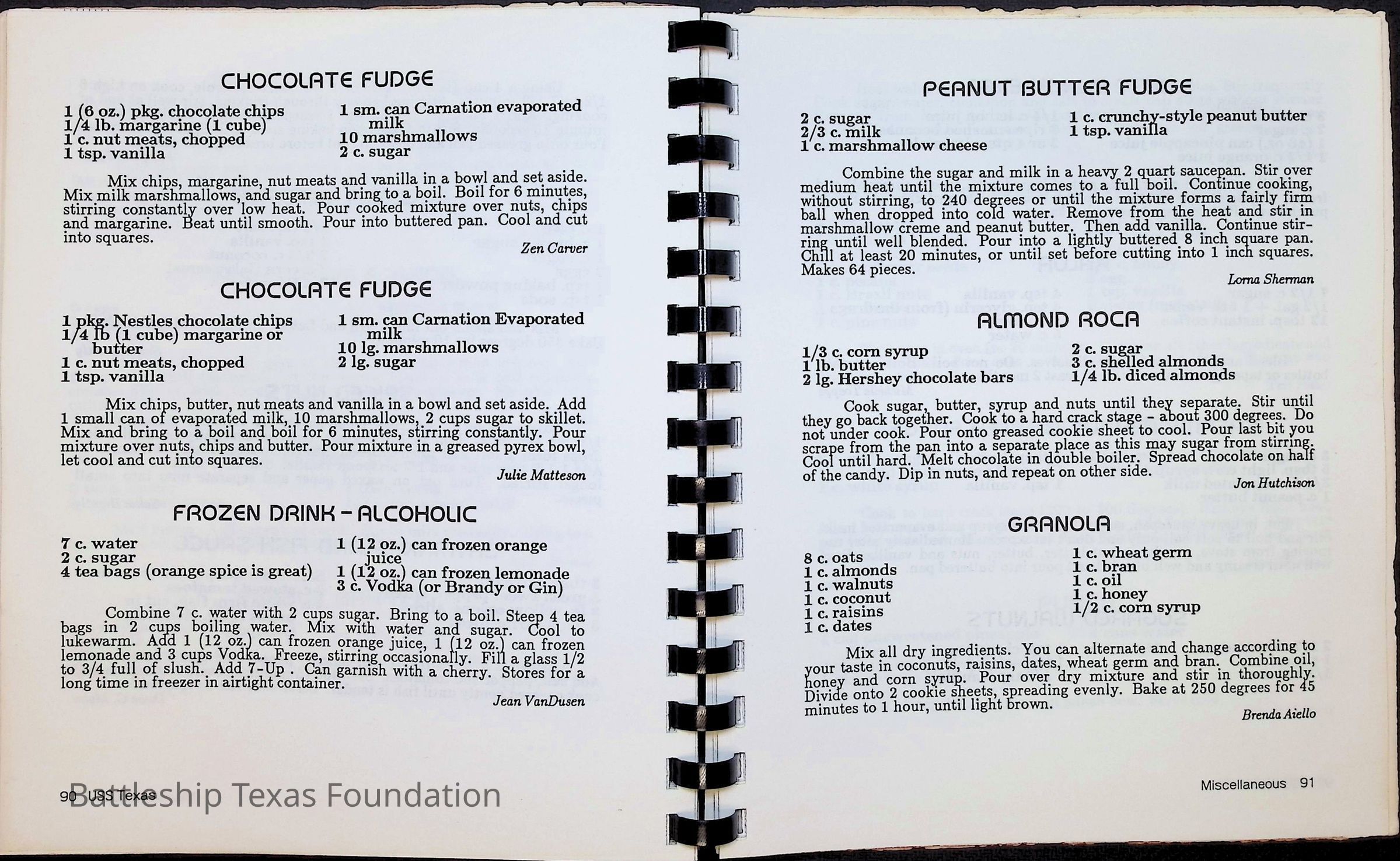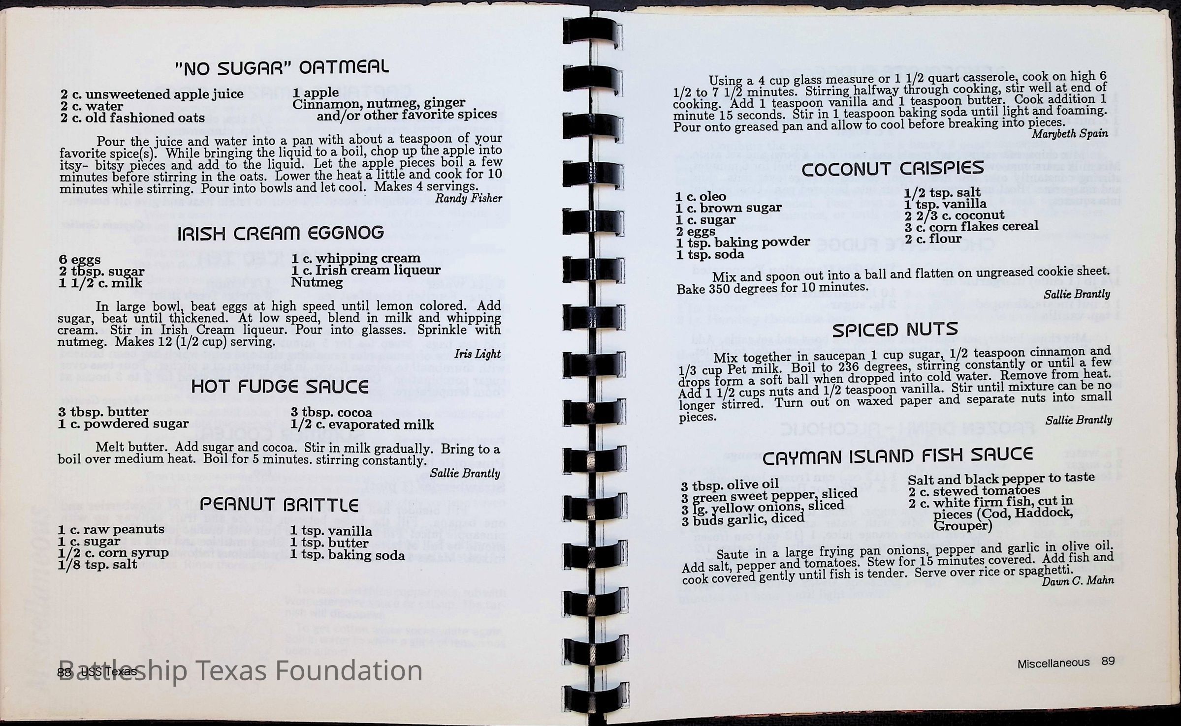 Cook book for the nuclear cruiser USS Texas (CGN-39). Yellow cover with rows of roses above title.