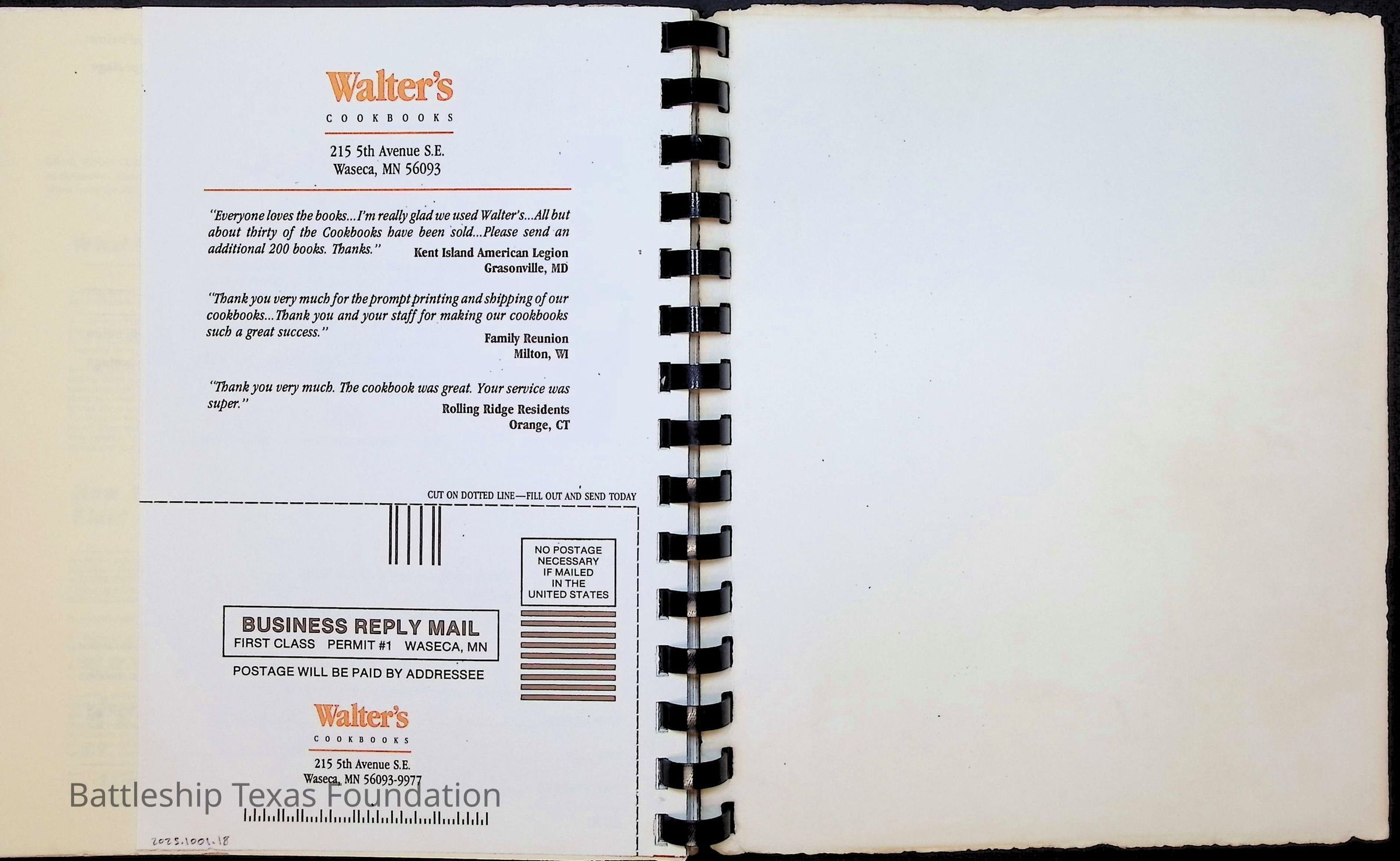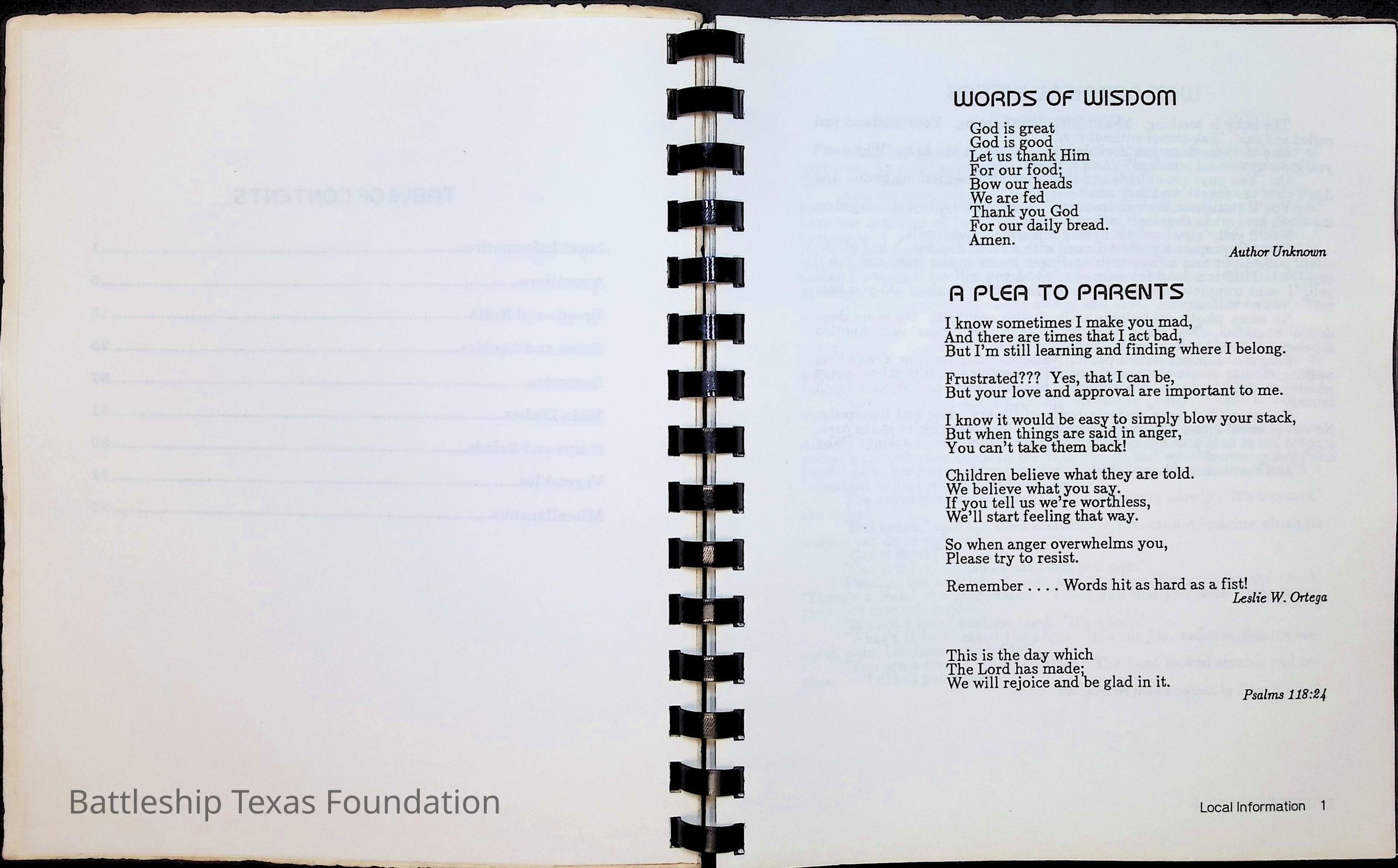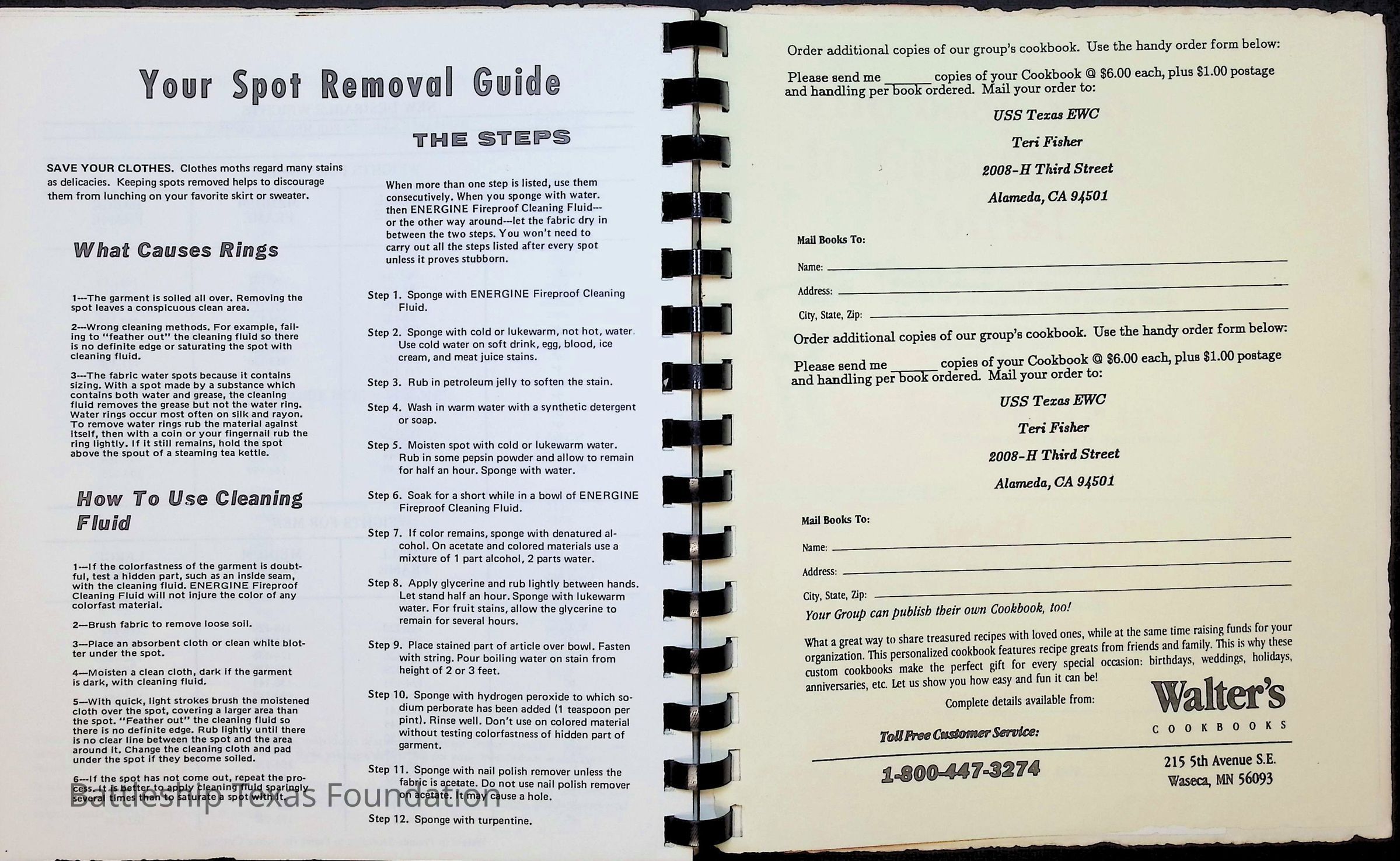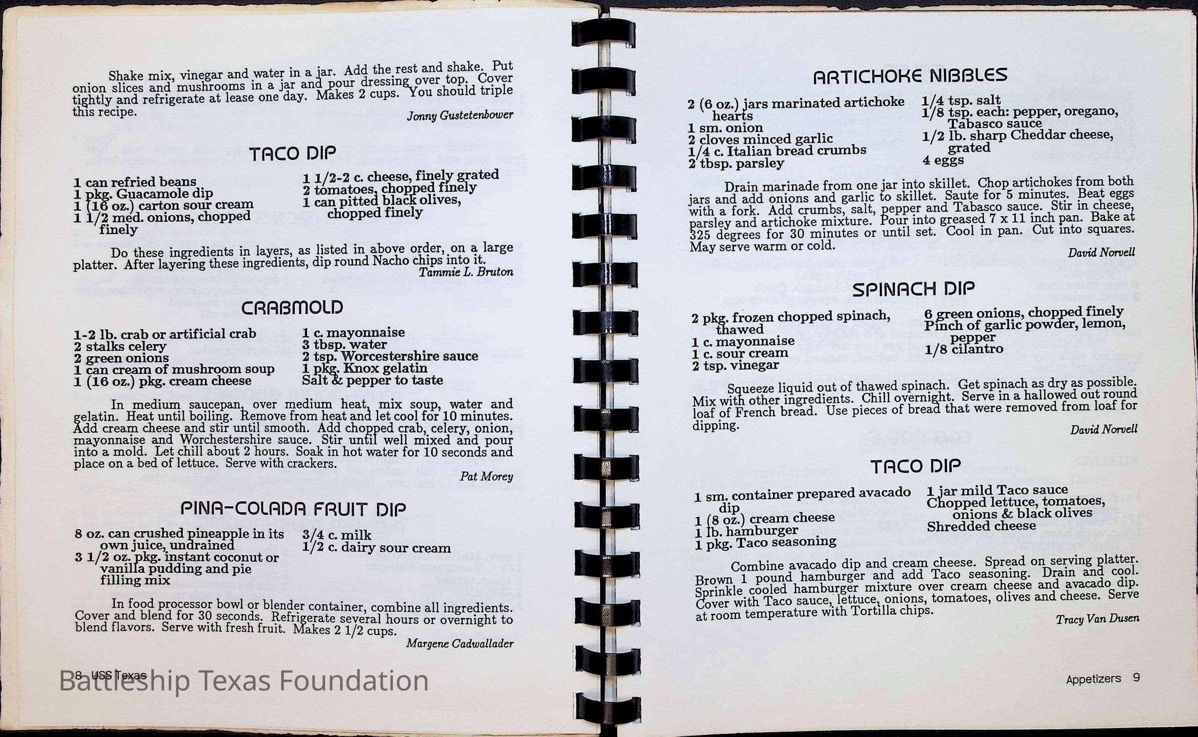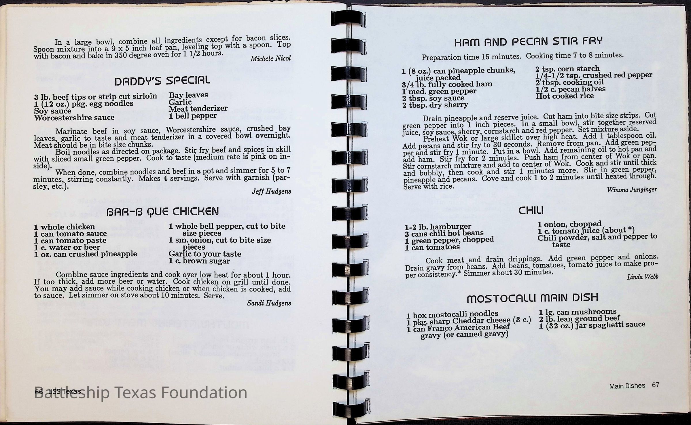 Cook book for the nuclear cruiser USS Texas (CGN-39). Yellow cover with rows of roses above title.