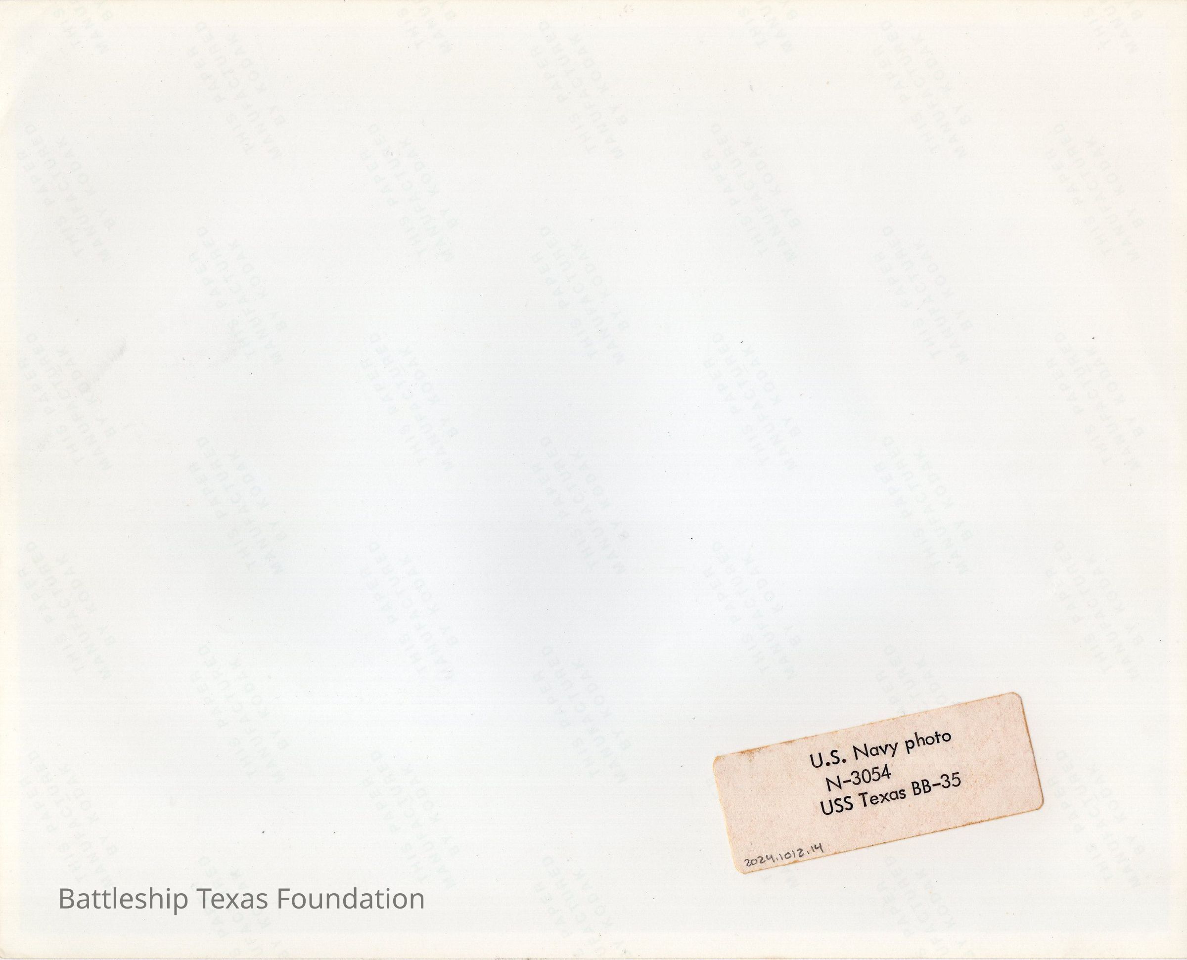 Battleship Texas began preparations for Operation “Detachment,” the invasion of Iwo Jima, on January 23, 1945. She departed the Ulithi Islands on February 10, and supported the landings from February 16 to March 7, and returned to the Ulithi Islands on March 10, 1945.