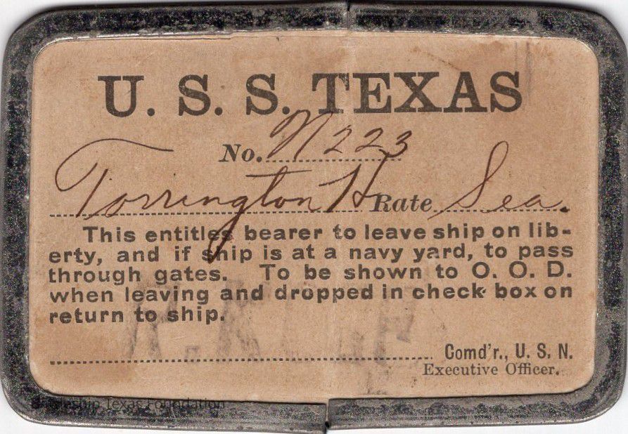 Liberty Passes were awarded to the crew of Battleship Texas when the ship made port. During that time, this pass allowed men to disembark from the ship. It wasn’t total freedom, they had strict time allowances.Collection