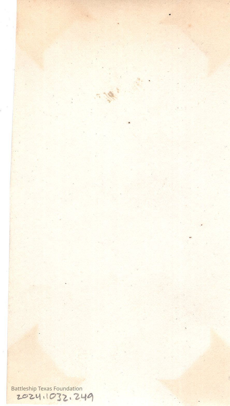 From a donated collection of individual photographs and pages out of a Texas crewmember's photo album. Items donated by the Los Angeles Maritime Museum.
