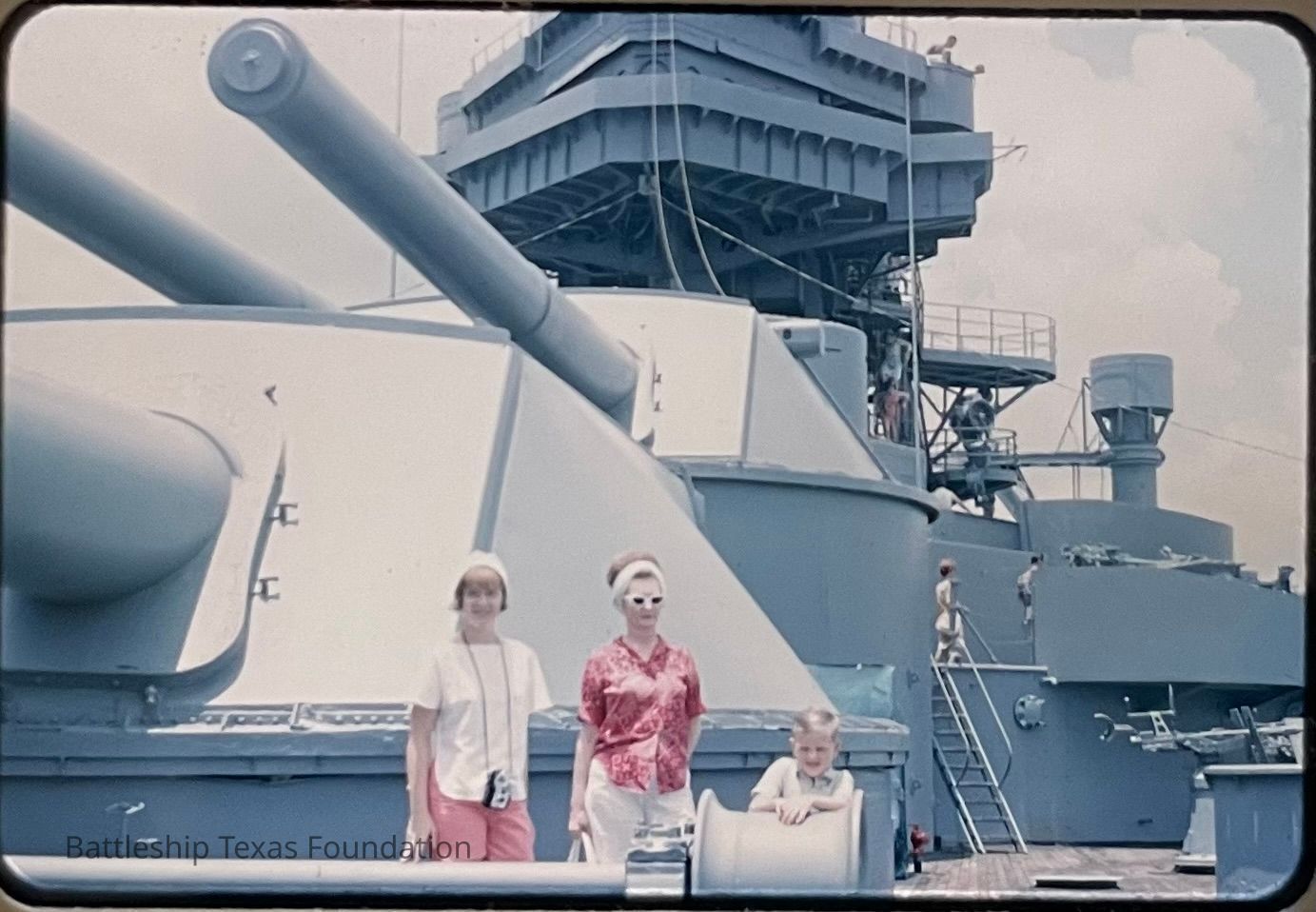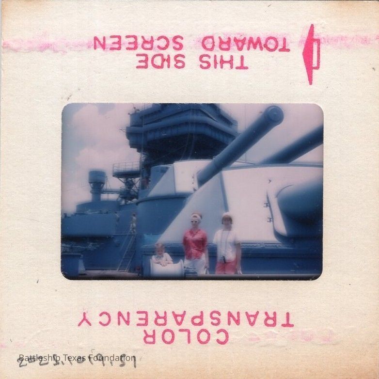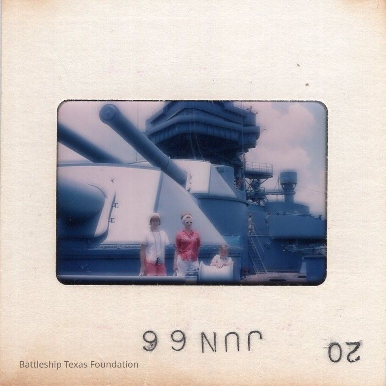 35mm slide of two women and a child on the forward portside of Battleship Texas taken on June 20, 1966.Context