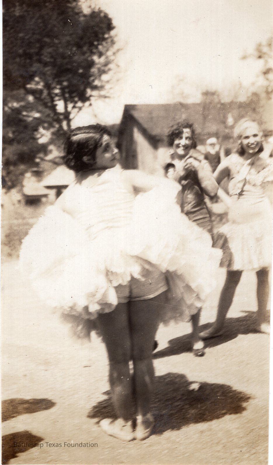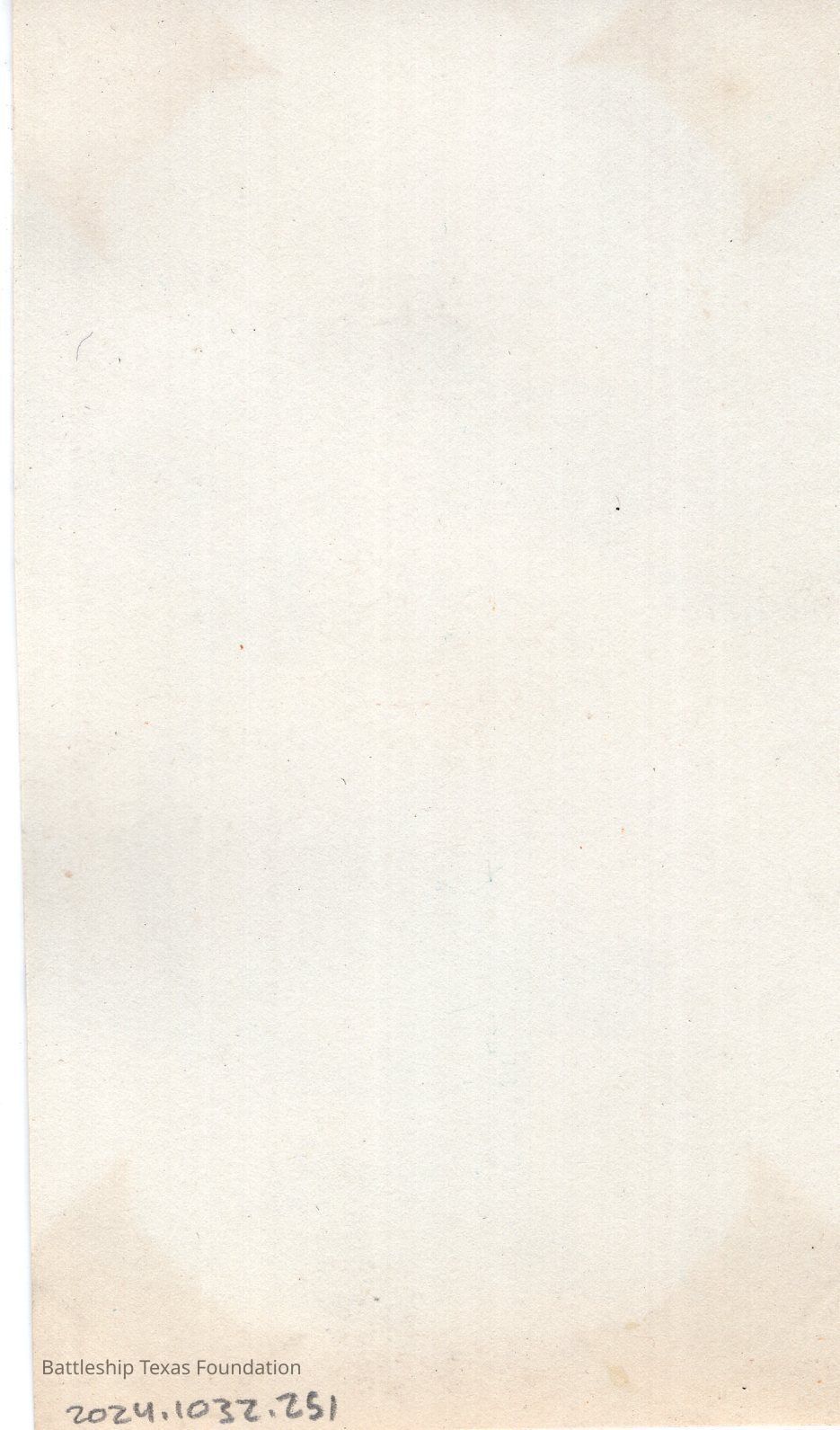 From a donated collection of individual photographs and pages out of a Texas crewmember's photo album. Items donated by the Los Angeles Maritime Museum.