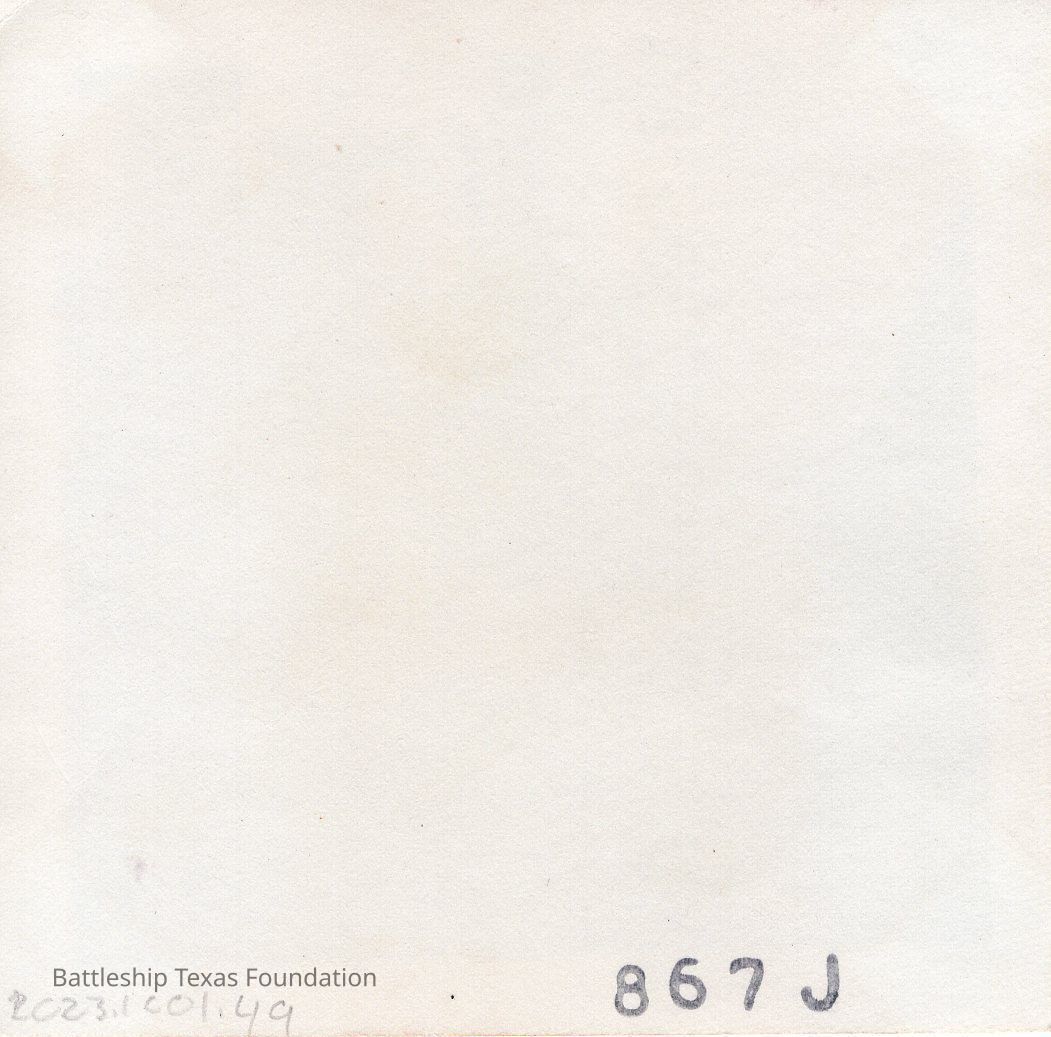 Two girls on 3"/50cal gun. Foremast visible in background. Back is stamped "867J"Context