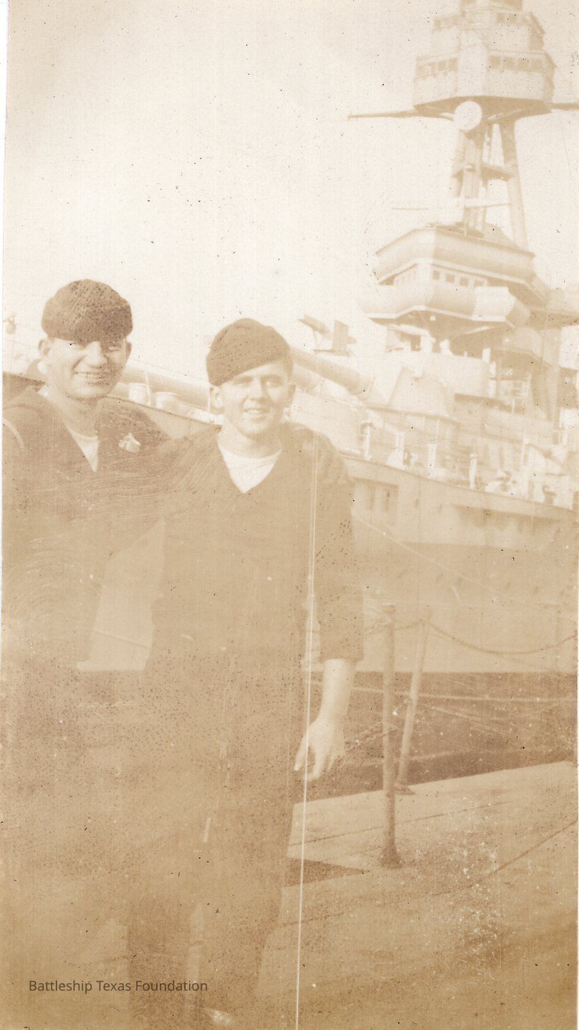 From a donated collection of individual photographs and pages out of a Texas crewmember's photo album. Items donated by the Los Angeles Maritime Museum.