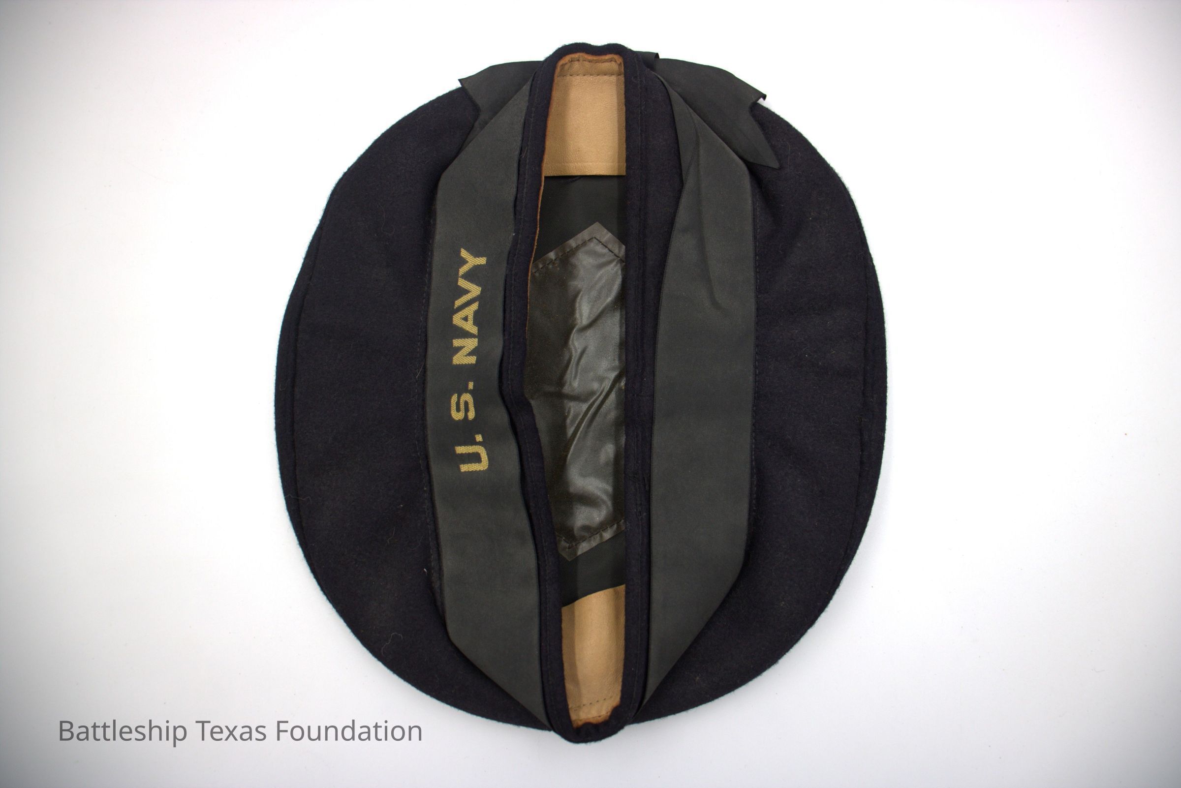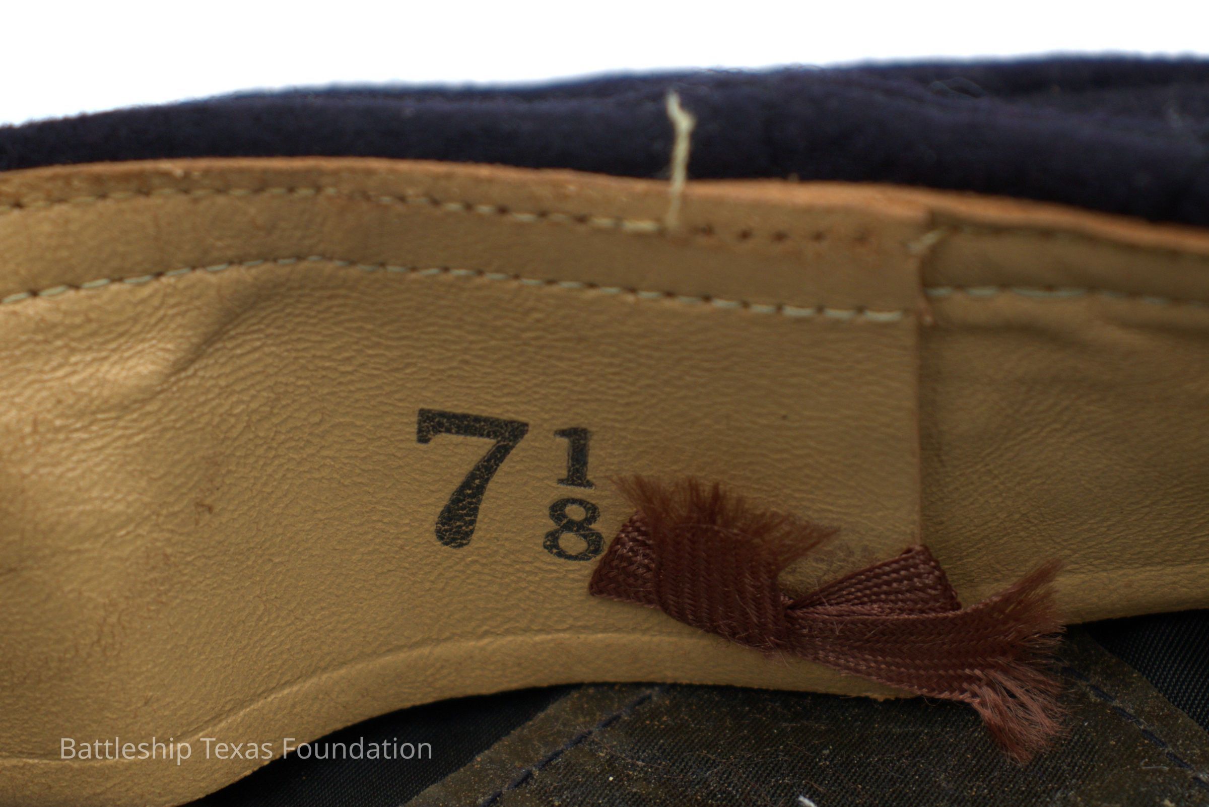 7 1/8 size blue cap with "U.S. NAVY" cap tally.Context