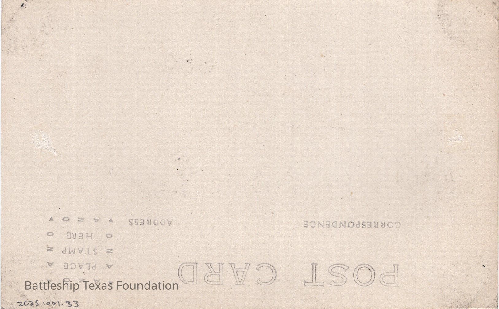 Entries 2025.1001.23 through 2025.1001.99 were taken out of the significantly deteriorated pages of at least one photo album belonging to Texas crew members and bought by BTF. The album photos date to the early to mid 1920s. Each photo had writing on the pages of the book, now discarded. The caption formerly on the page for this photo read,