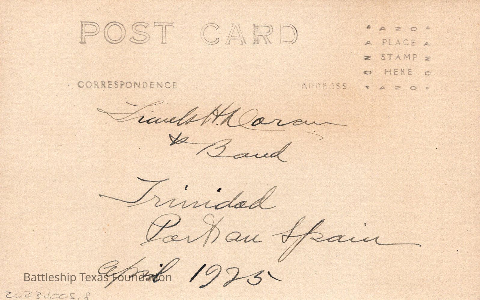USS Texas ship band post cardEntry/Object ID