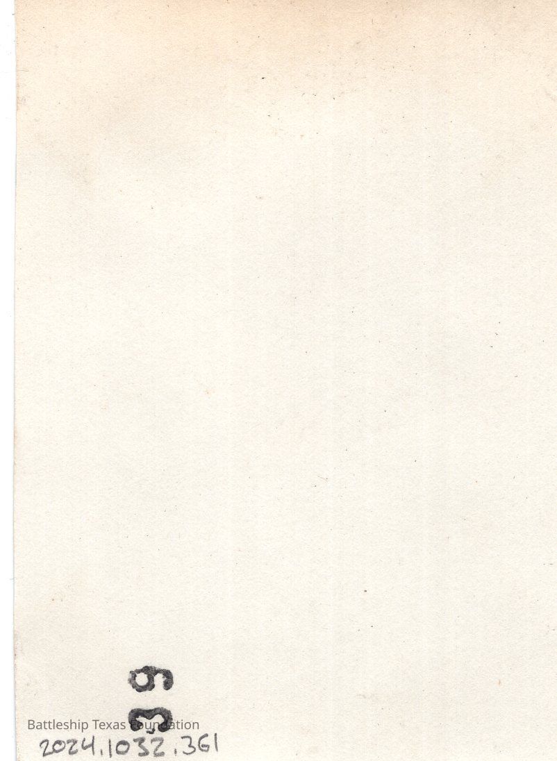 From a donated collection of individual photographs and pages out of a Texas crewmember's photo album. Items donated by the Los Angeles Maritime Museum.