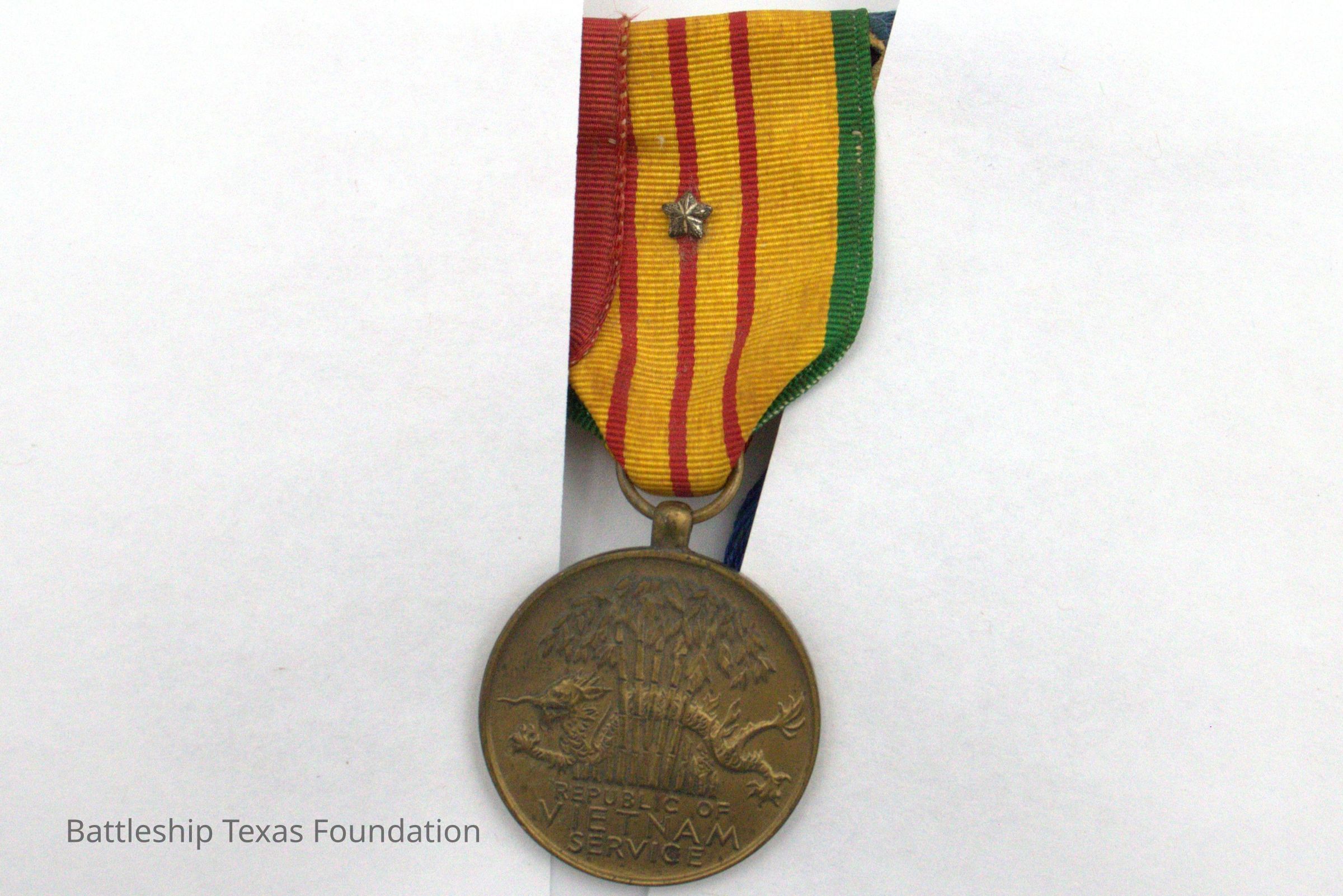 The Vietnam Service Medal was awarded for service in Vietnam, Thailand, Laos, or Cambodia from July 4, 1965, to March 28, 1973, and April 29 to 30, 1975. The medal was established by L.B. Johnson via Executive Order 11231 on November 28, 1965.Collection