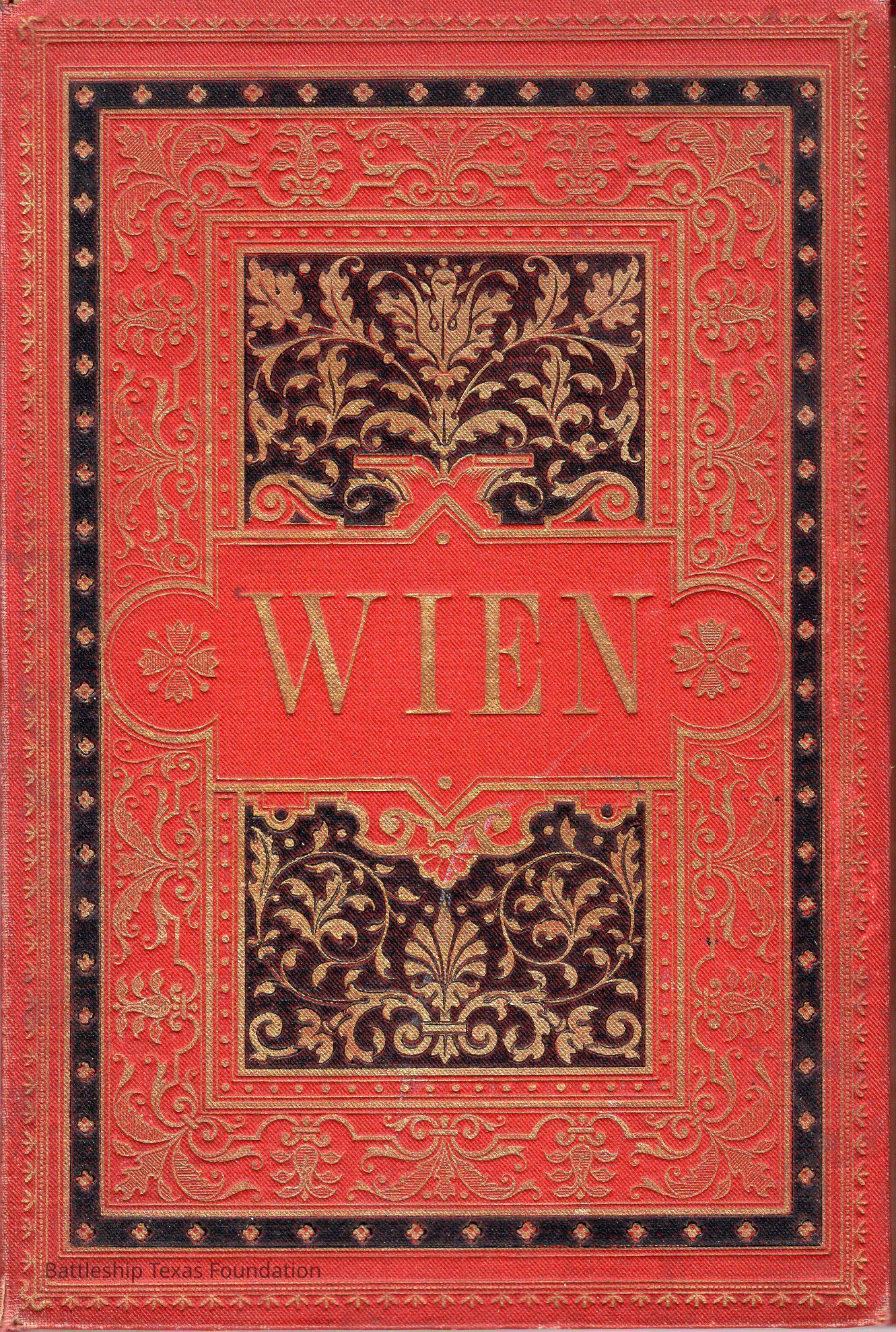 Red cover with gold and black decal. "WIEN" on cover.Context