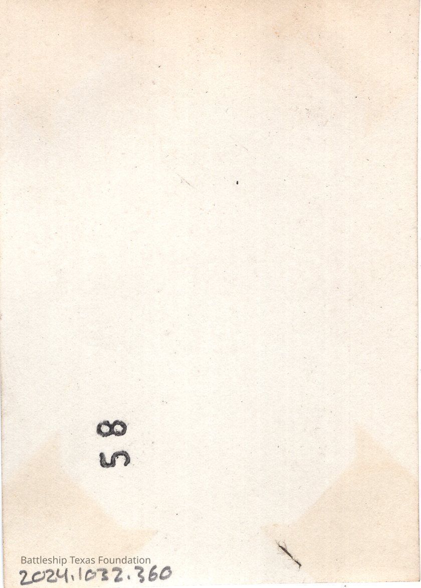 From a donated collection of individual photographs and pages out of a Texas crewmember's photo album. Items donated by the Los Angeles Maritime Museum.