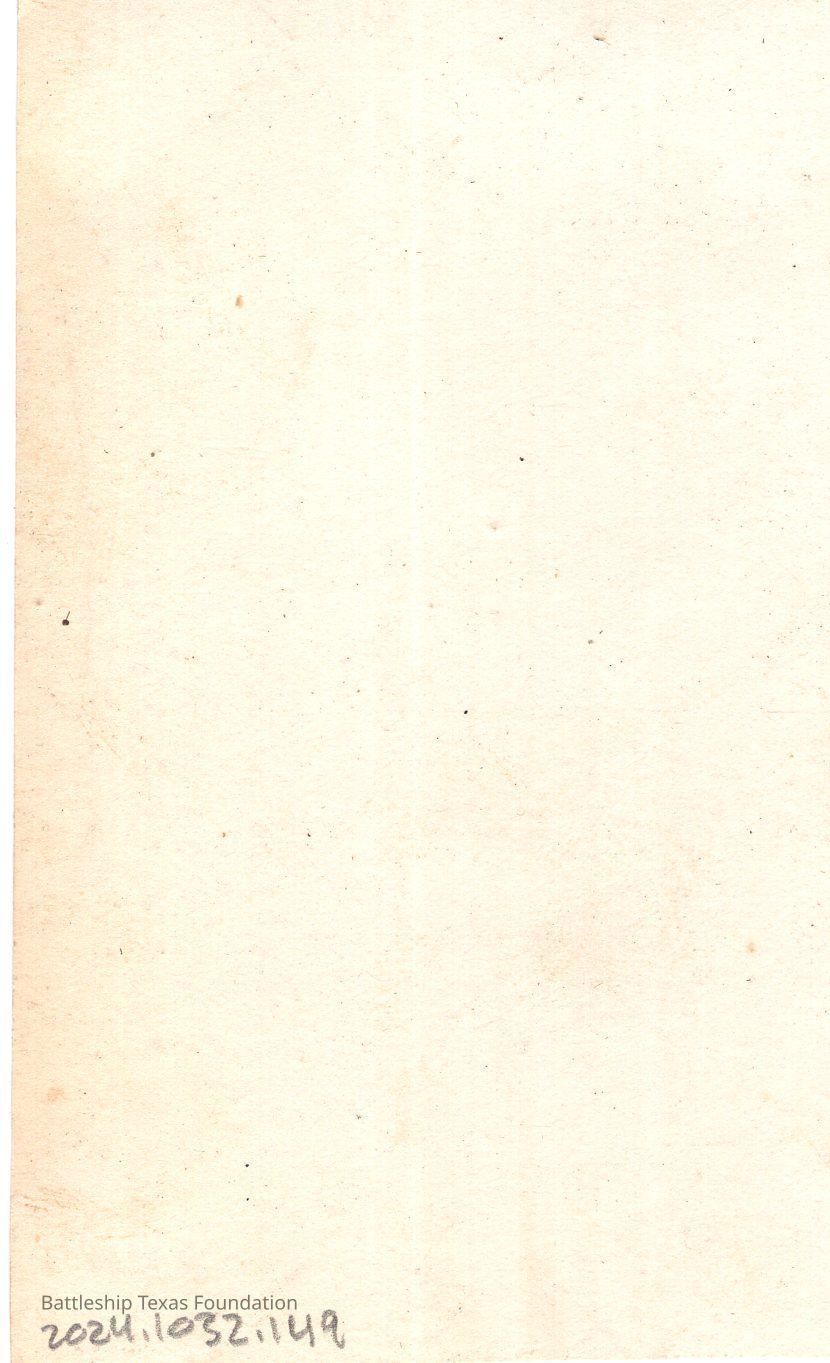 From a donated collection of individual photographs and pages out of a Texas crewmember's photo album. Items donated by the Los Angeles Maritime Museum. Many photographs had writing on the pages of the book, now discarded. The caption formerly on the page for this photo read, "--?--"