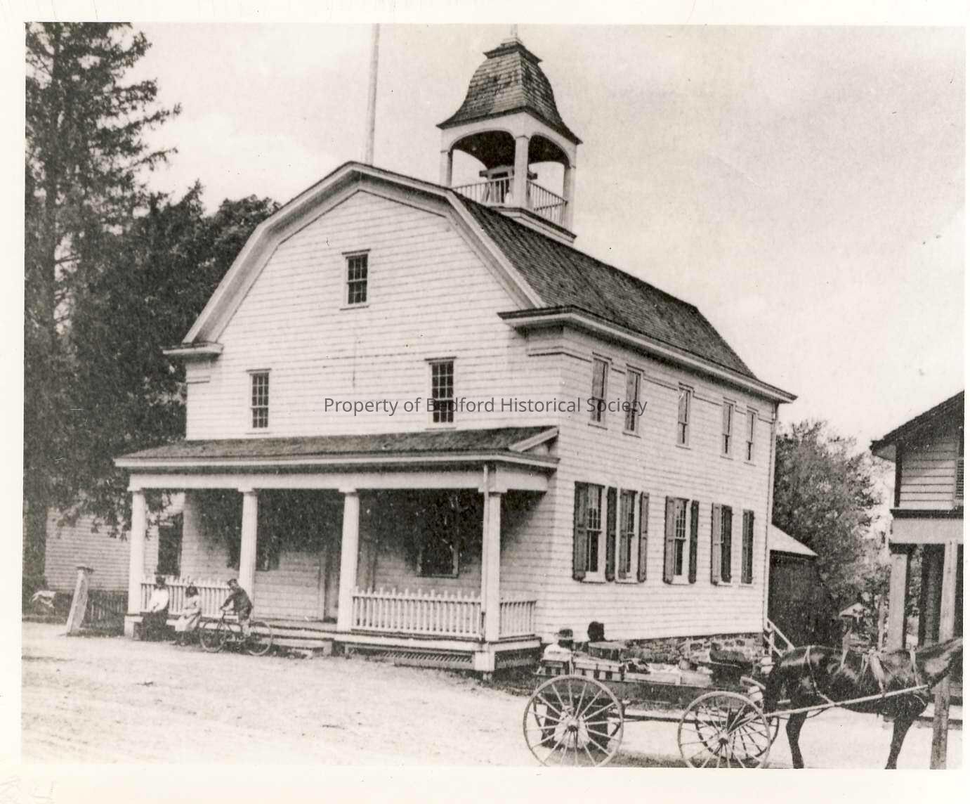Court House built in 1787. Court Sessions for Northern Westchester were held here until 1870. Store of G.E. Brown burned down in 1905. Same photo as 140, 815, 402. Two mounted versions in different sized in Flat Files Drawer 12