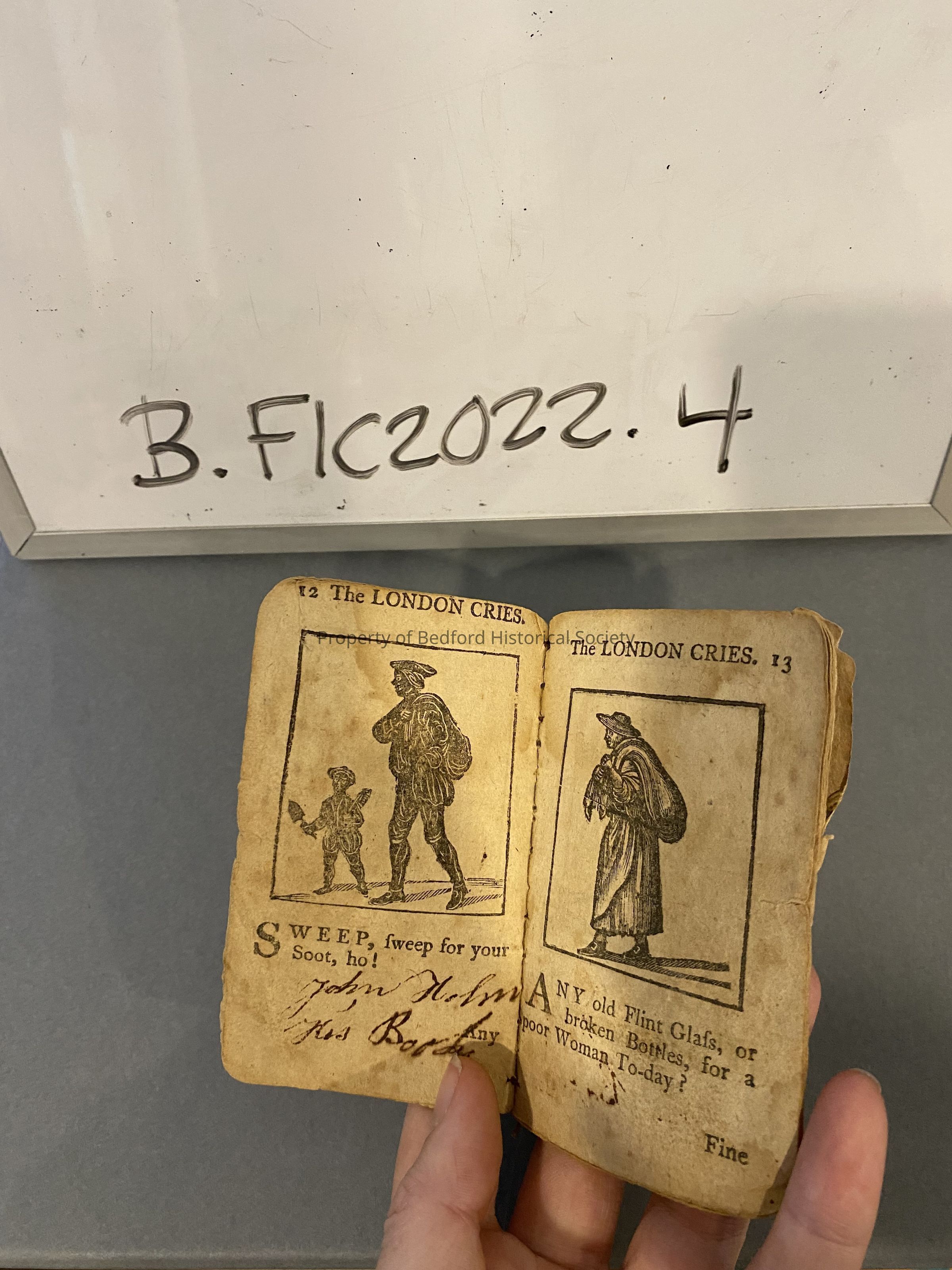 small chapbook called "The London Cries" with inscription "John Holmes his book" small booklet with hand stitched binding