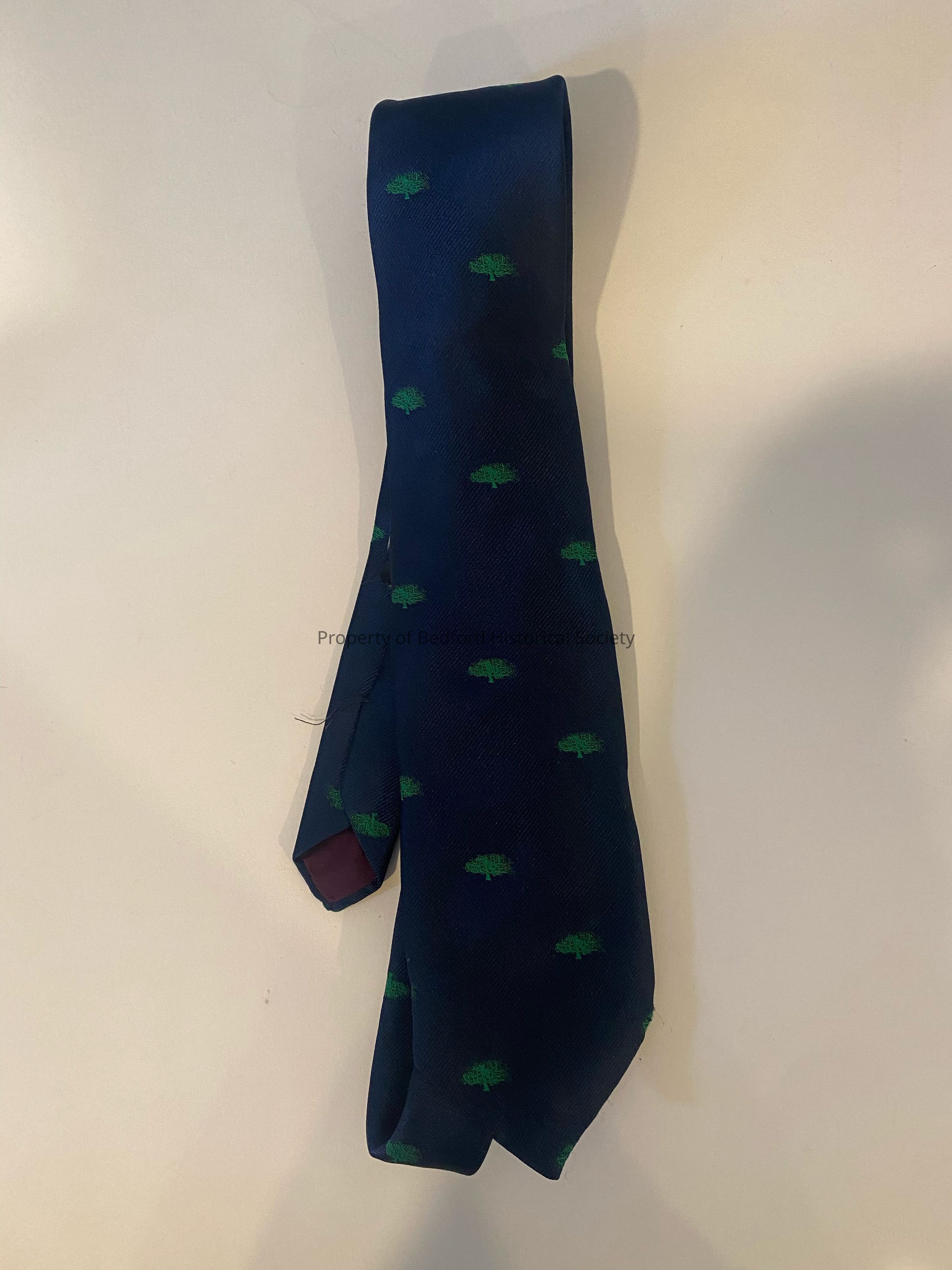Blue tie with green Bedford Oak tree design c. 1960s.