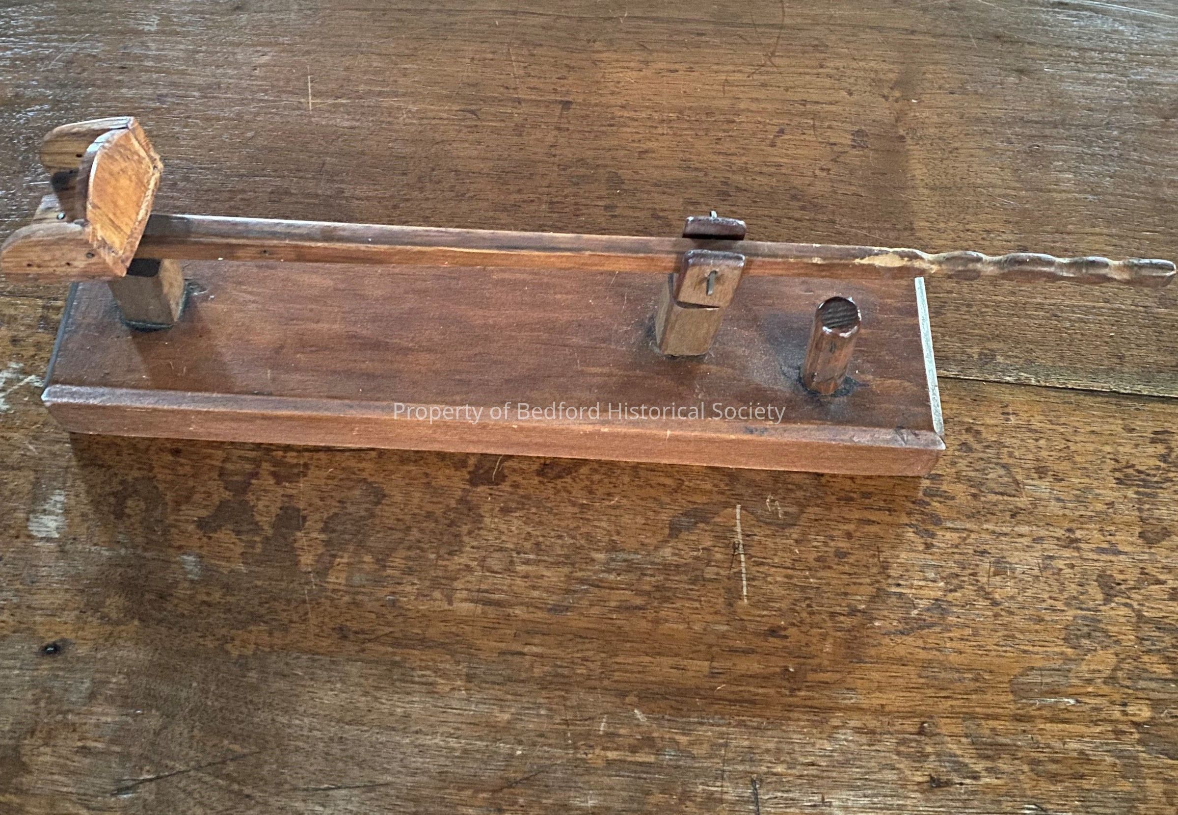 small model of of ducking stool or "cucking stool" which was used in the 18th century as a punishment. The person was fastened to a long wooden beam and repeatidly ducked into a body of water