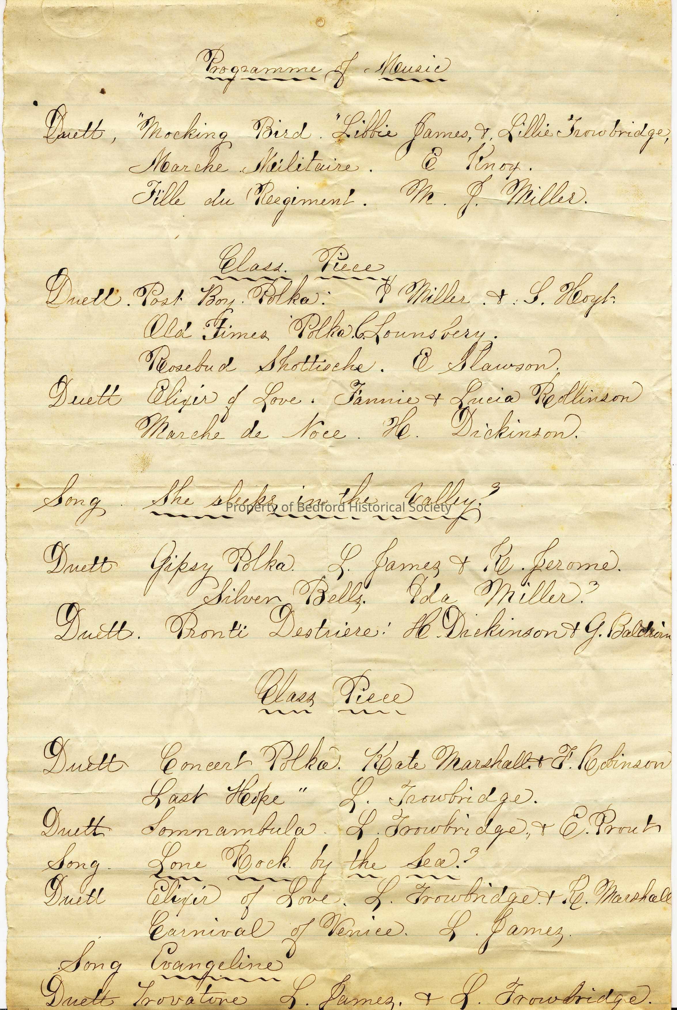 Musical Program by a class, circa 1860? *Includes transcript and 1860 census data in transcriptions binder
