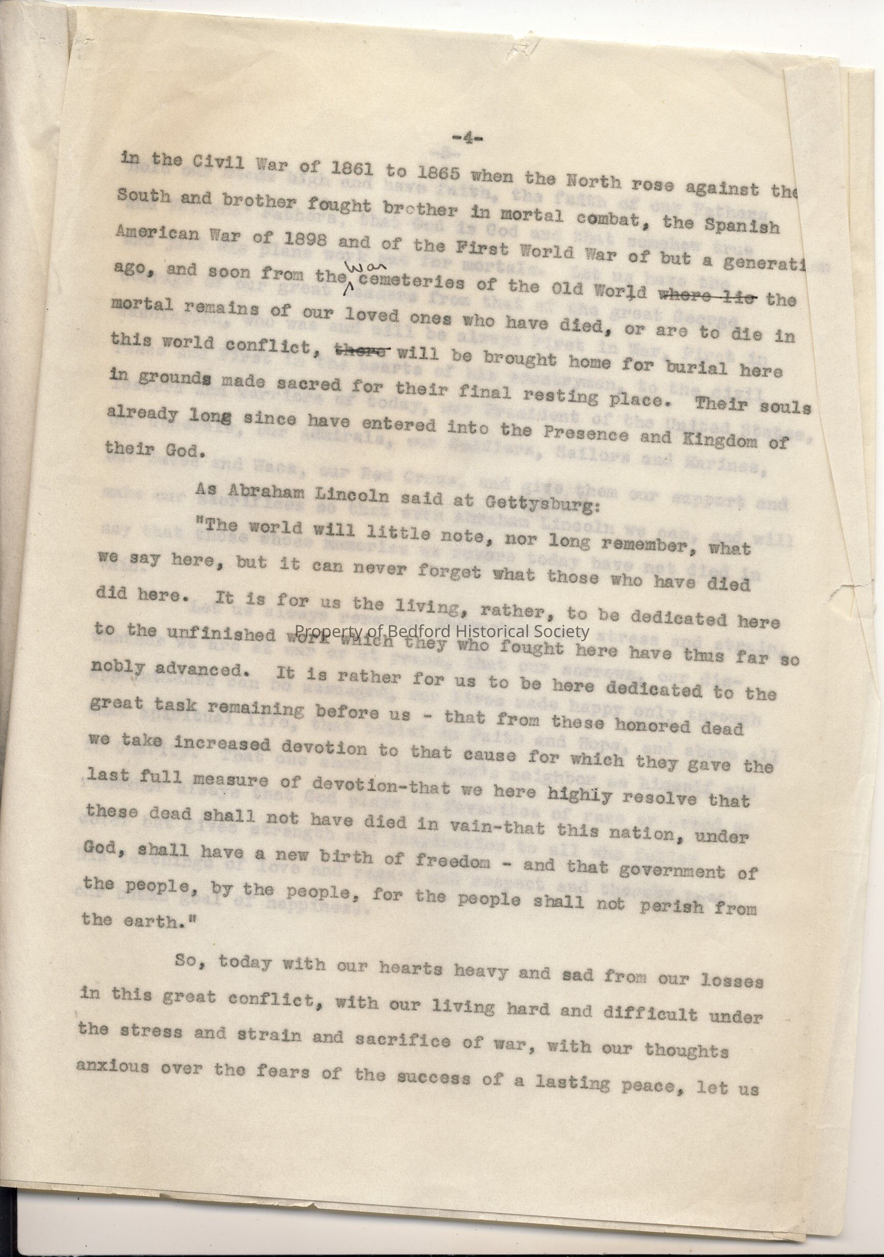 Memorial Day Address given by Gustavus Town Kirby on May 30, 1945 at Bedford Hills, New York. Page 4 of 5