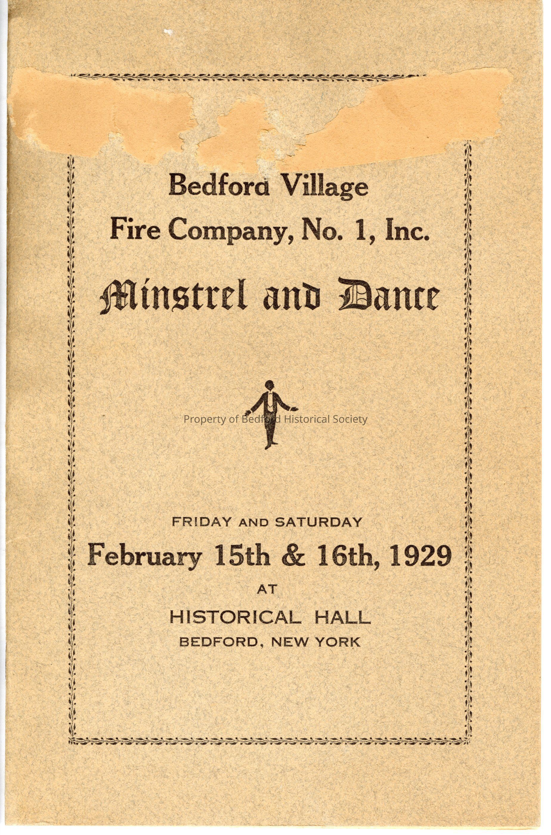 Program brochure for "Minstrel and Dance" presented by the the Bedford Village Fire Company, performed at Historical Hall.