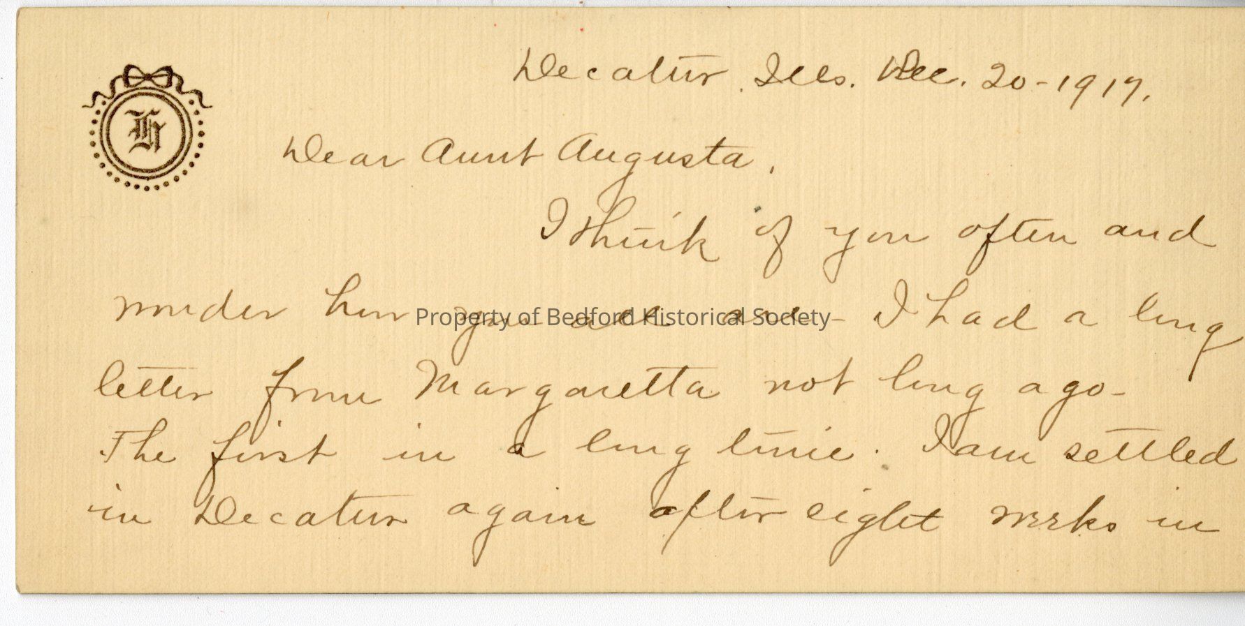 Letter address to "Aunt Augusta", probably Holmes family