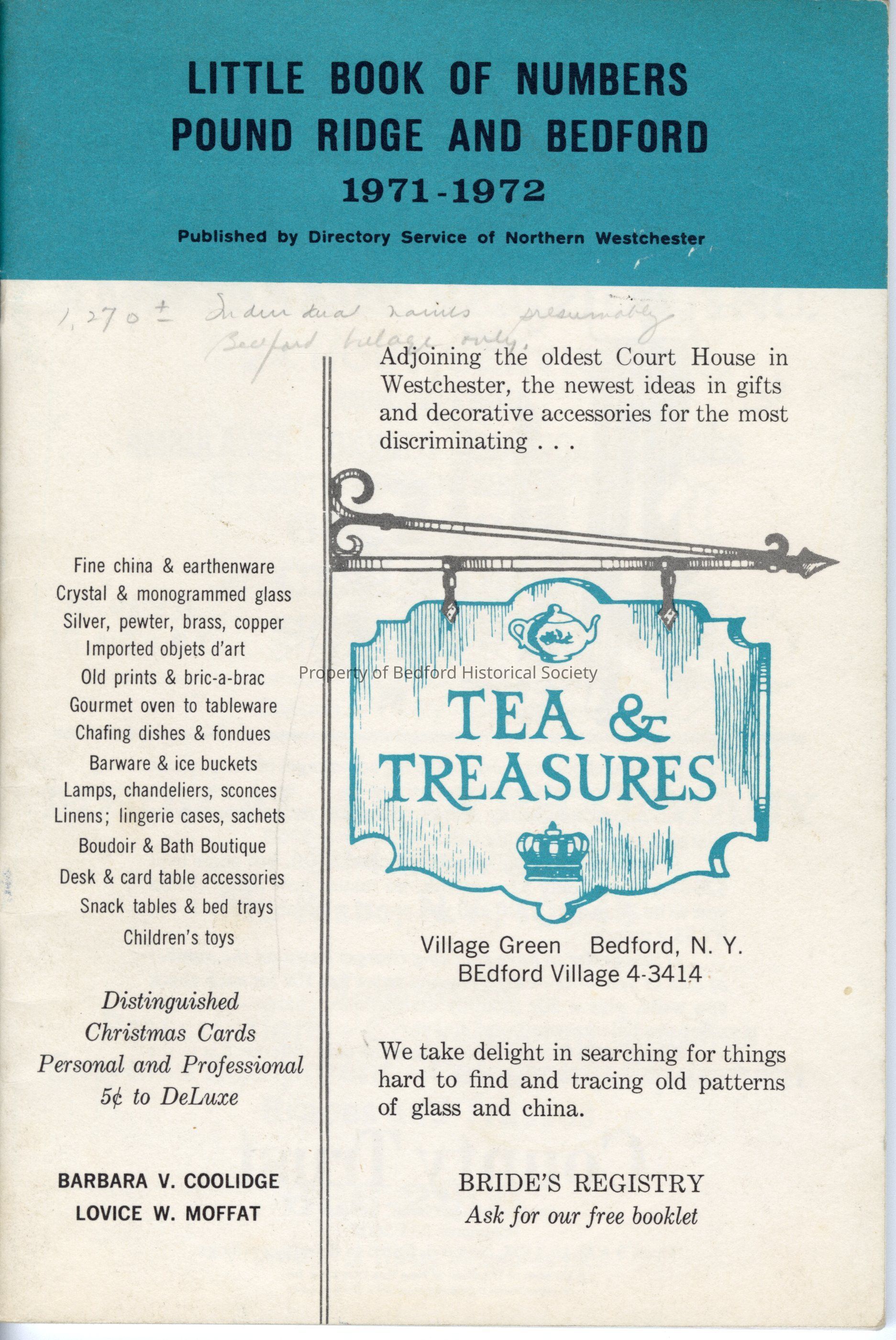 Little Boot of Numbers Pound Ridge and Bedford 1971-1972