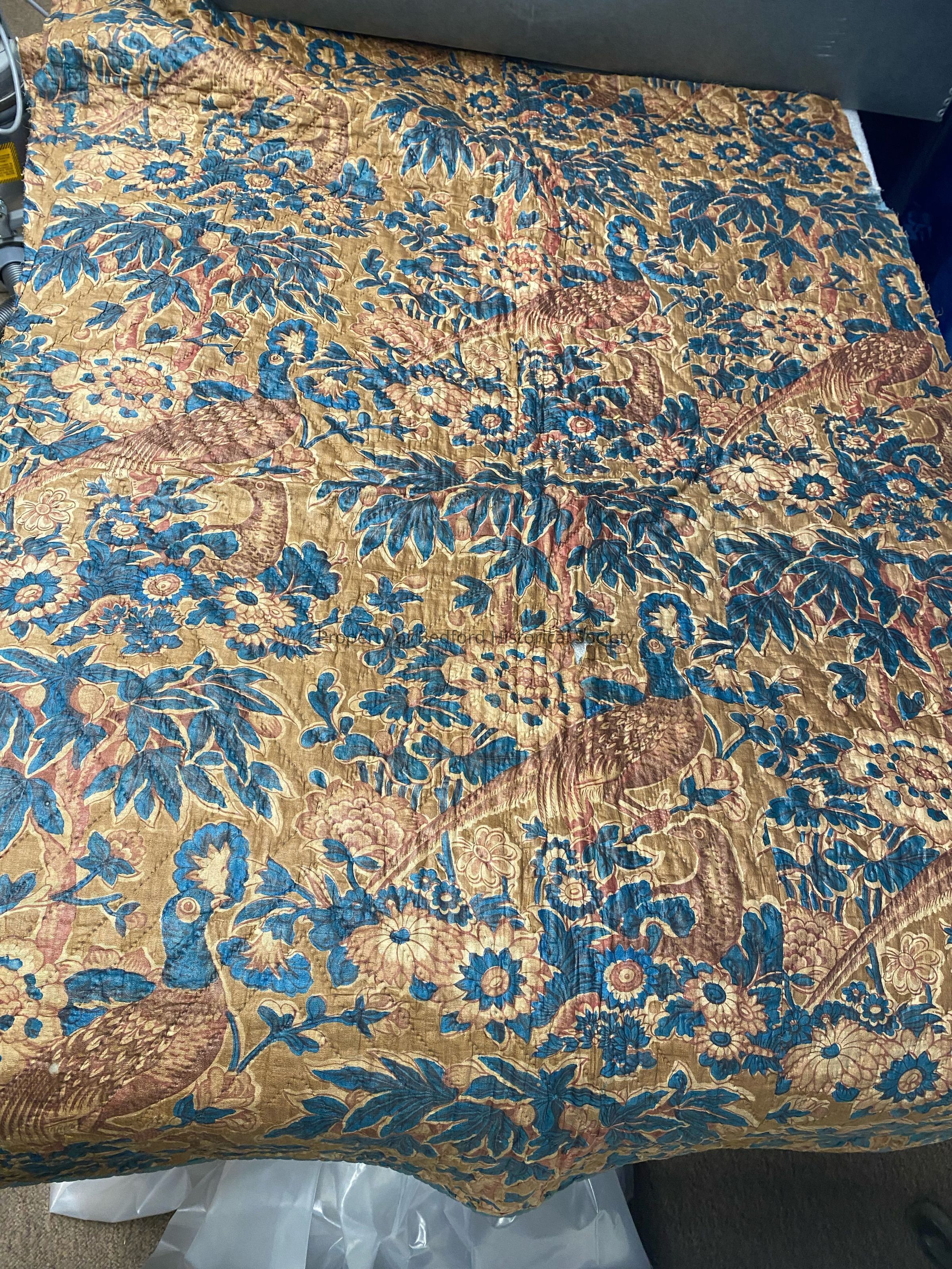 Blue and gold copper plate chintz with peacock decoration, c. 1840