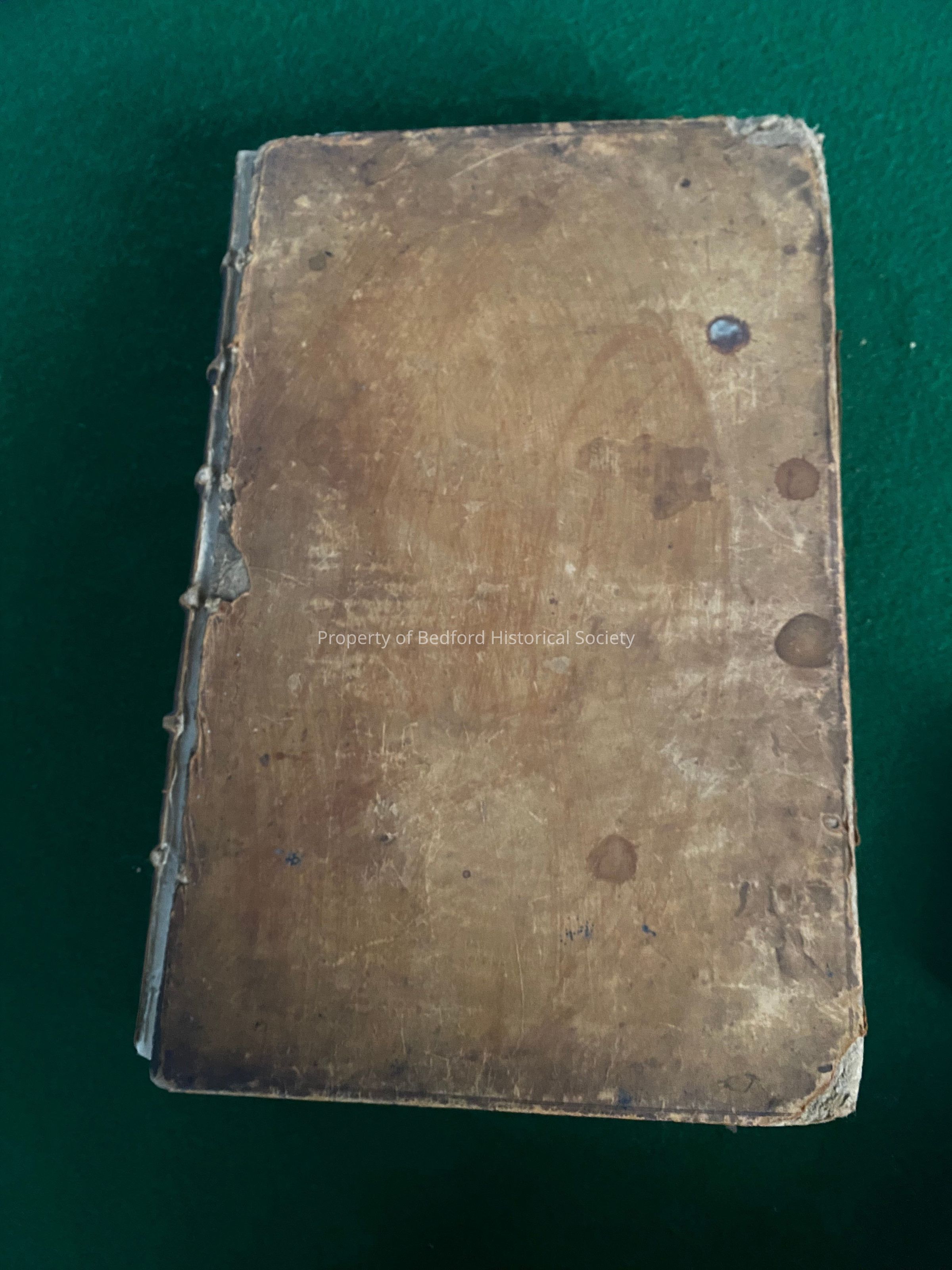 Brown leather bound law book of Judge Robertson with his name in gold lettering printed on top right hand corner of cover