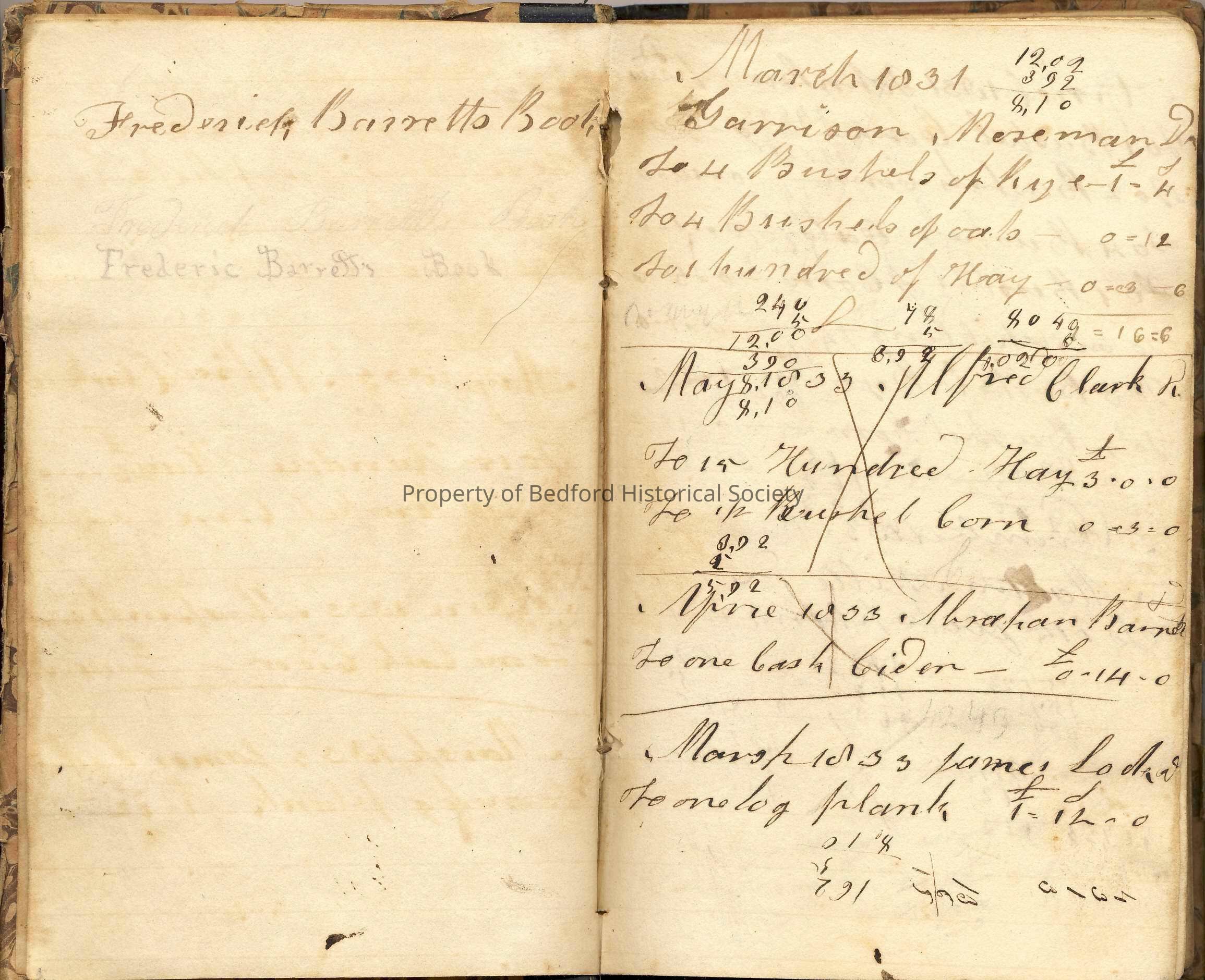Account book of Frederic Barrett, 1831-1871
