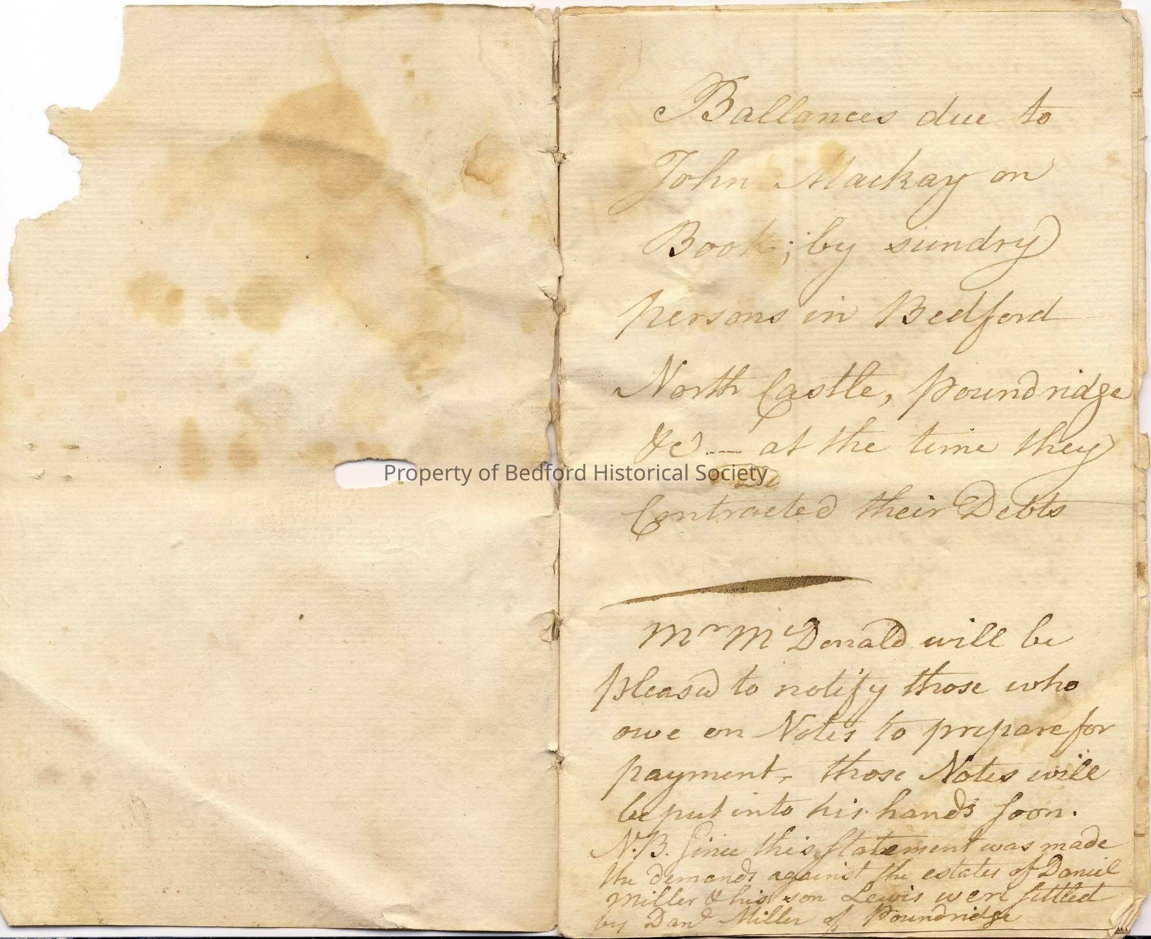 "Balances due to John Mackay on Book, by sundry persons in Bedford, North Castle, Pound ridge, &c. at the time they contracted their debts.