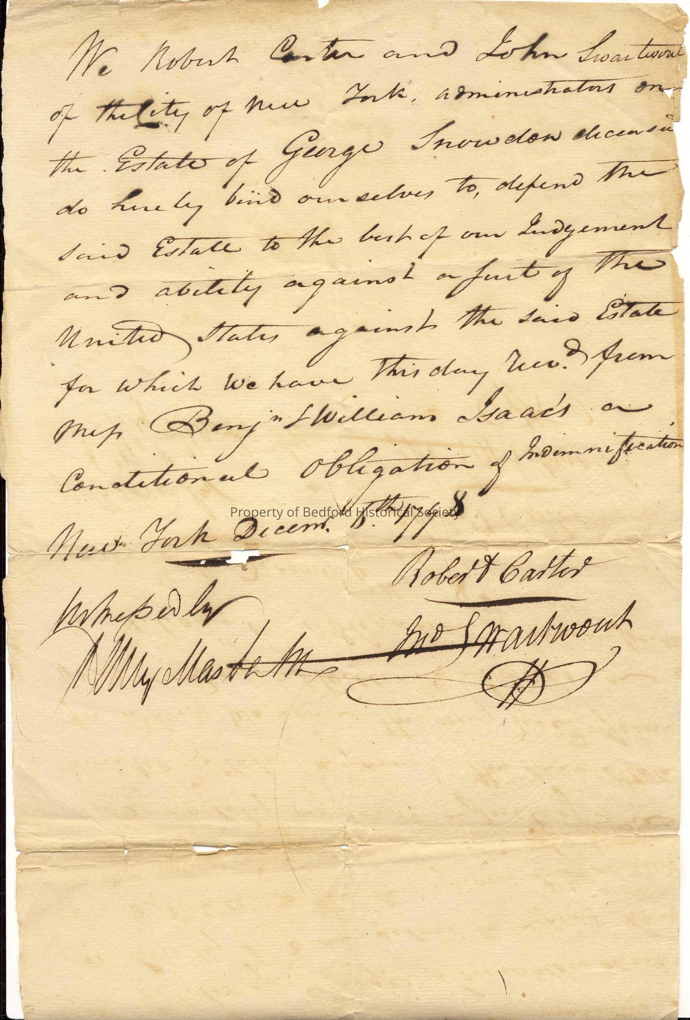 Acknowledgement of receipt of obligation from Benjamin and William Isaacs, dated December 6, 1798