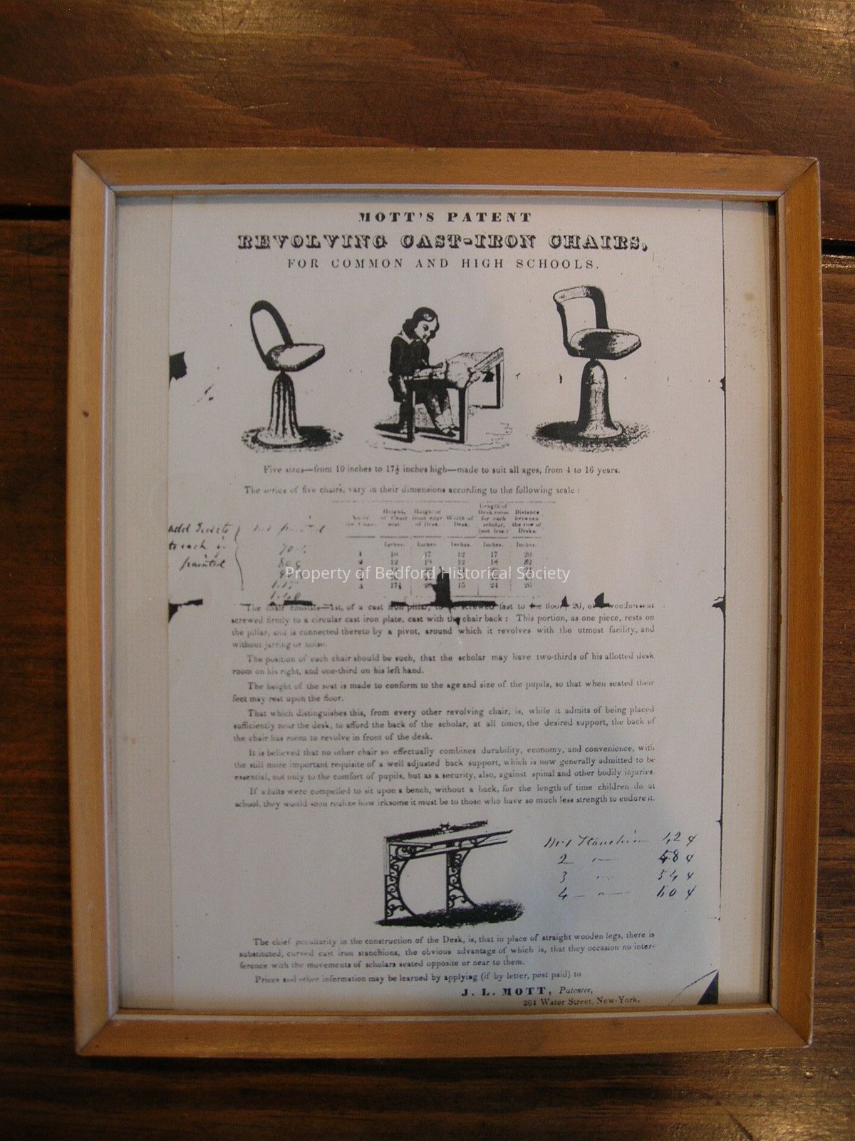 Ad. for Mott's Patent Revolving Cast-Iron Chairs, For Common and High Schools.