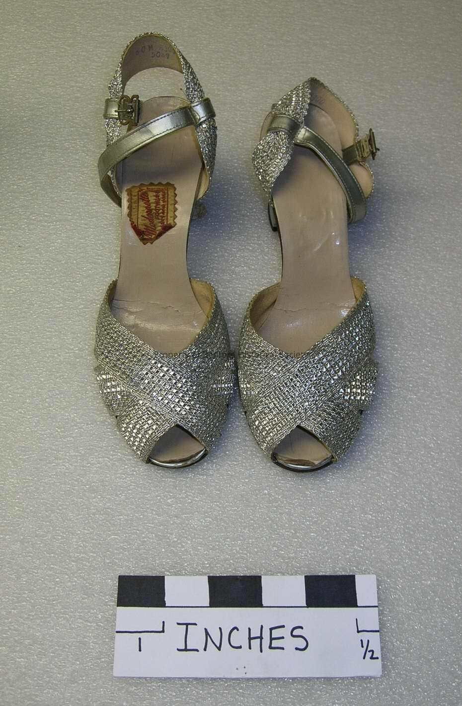 Silver high heeled sandals, label: Modernette Footwear by Saks New York