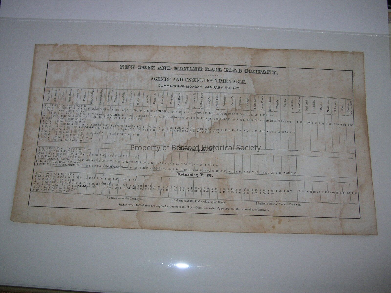 Agents' and Engineers' Time Table for the New York and Harlem Rail Road Company, 1852