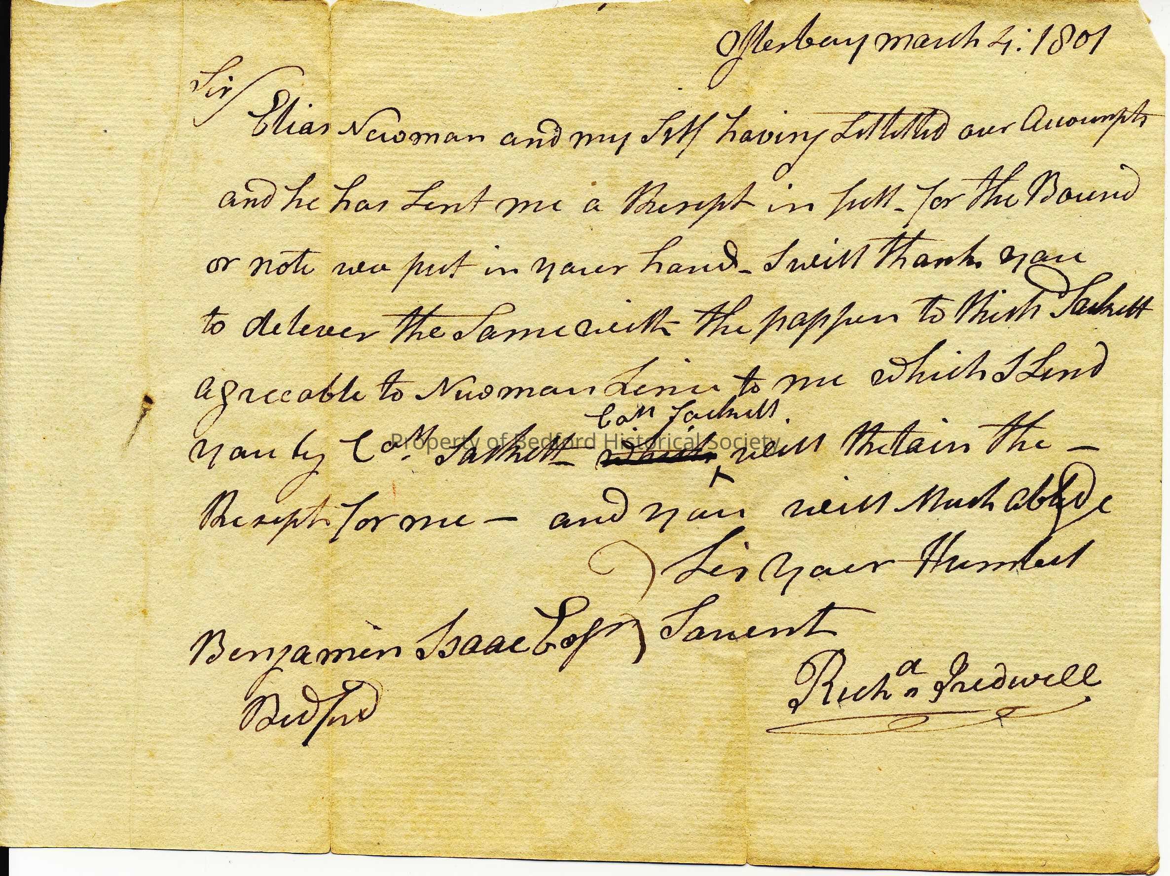 Agreement between Richard Tredwell, Elias Newman and Benjamin Isaacs, dated March 4, 1801