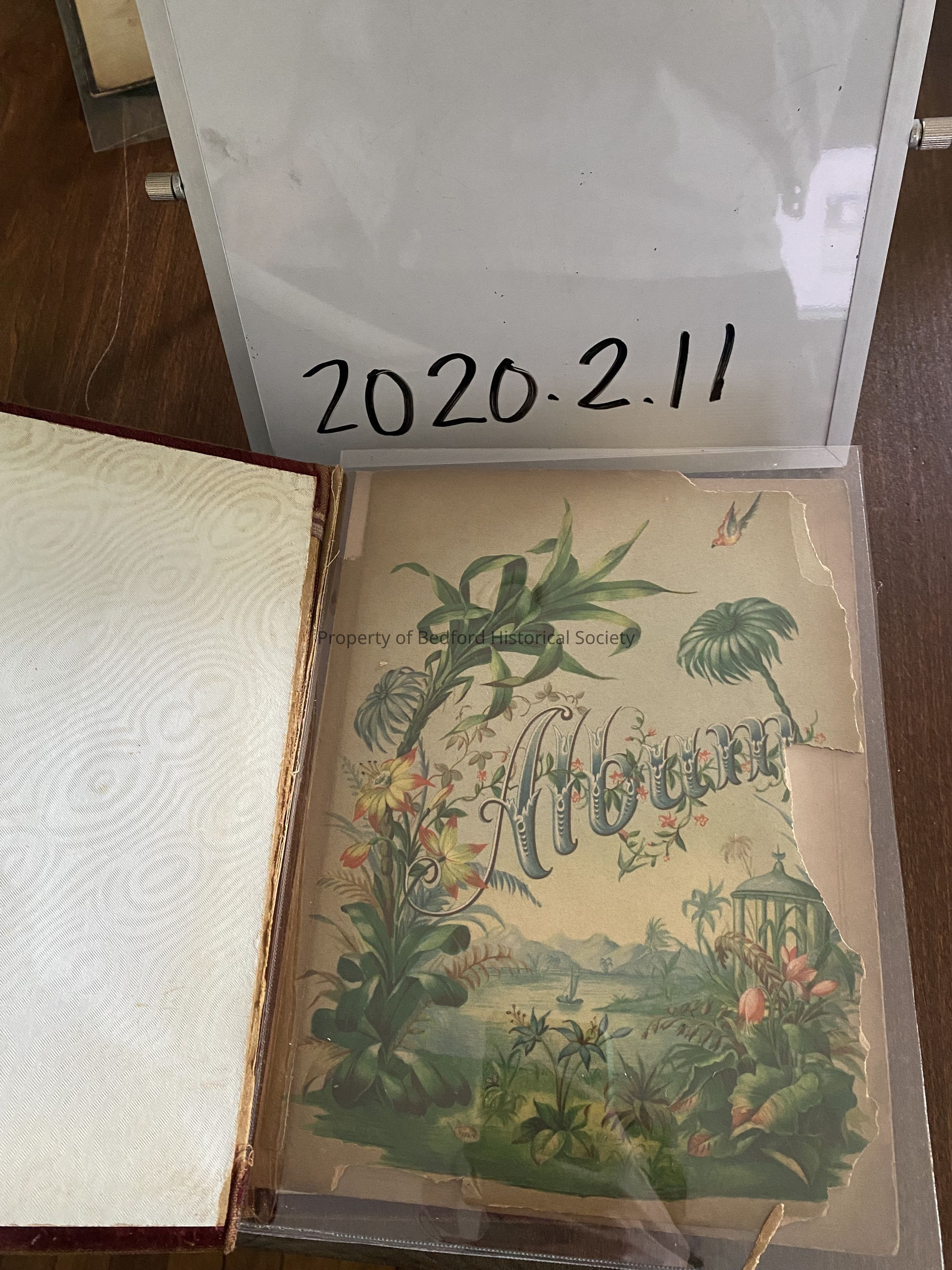 red velvet photographic album that came with items that belonged to John Clark Jr. and Mary Connell Clark