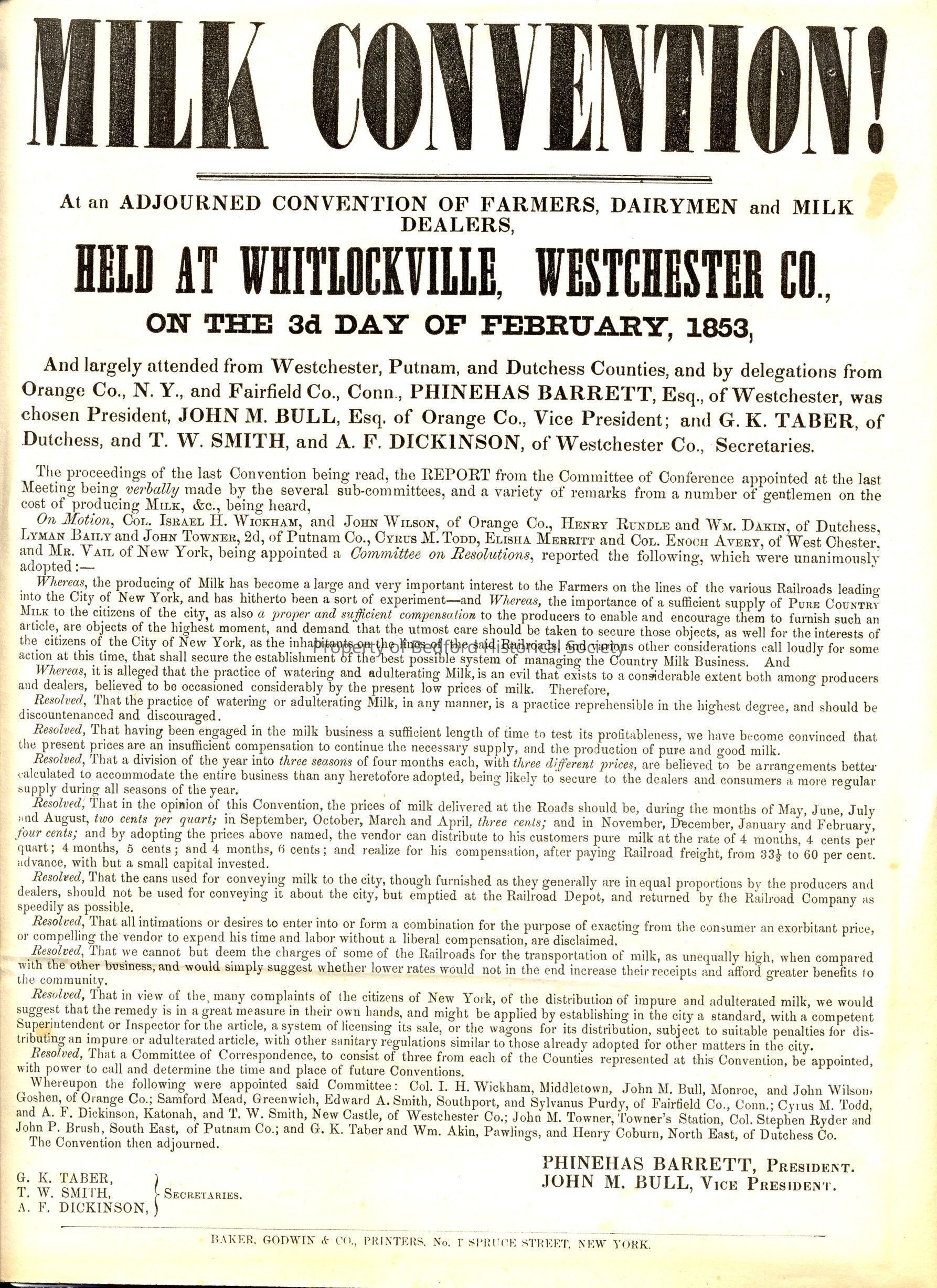 Announcement of a Milk Convention. February 3rd, 1853