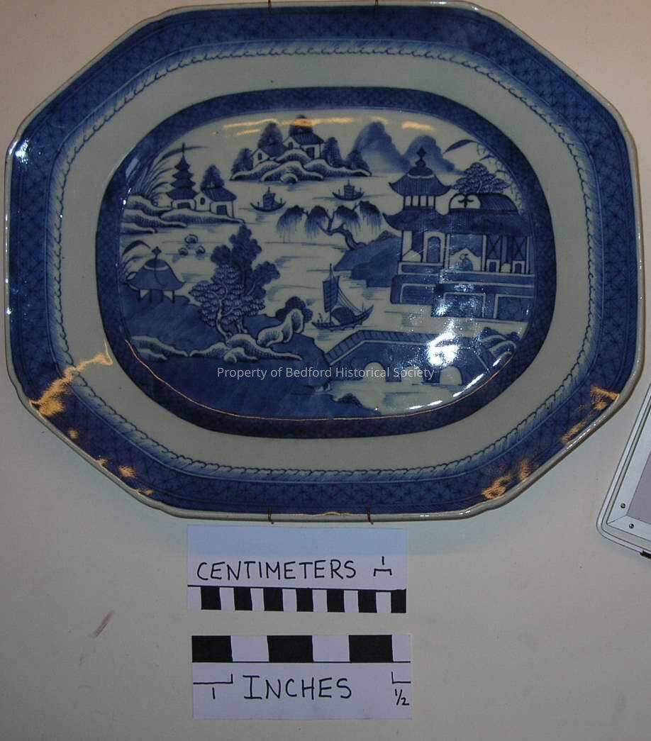 Blue Canton Set, 1790 7" oval blue Chinese Canton china, small dish