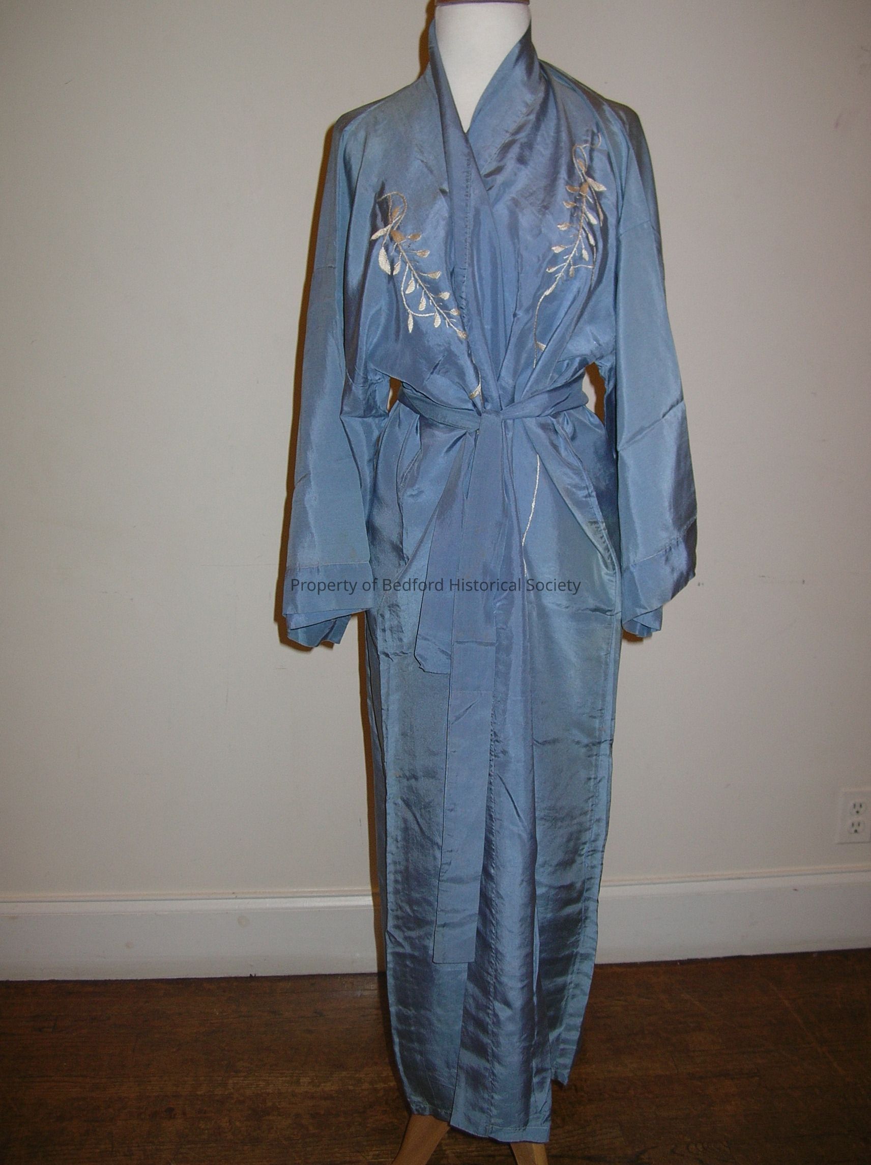 Womens blue silk Japanese robes with silk waist tie.