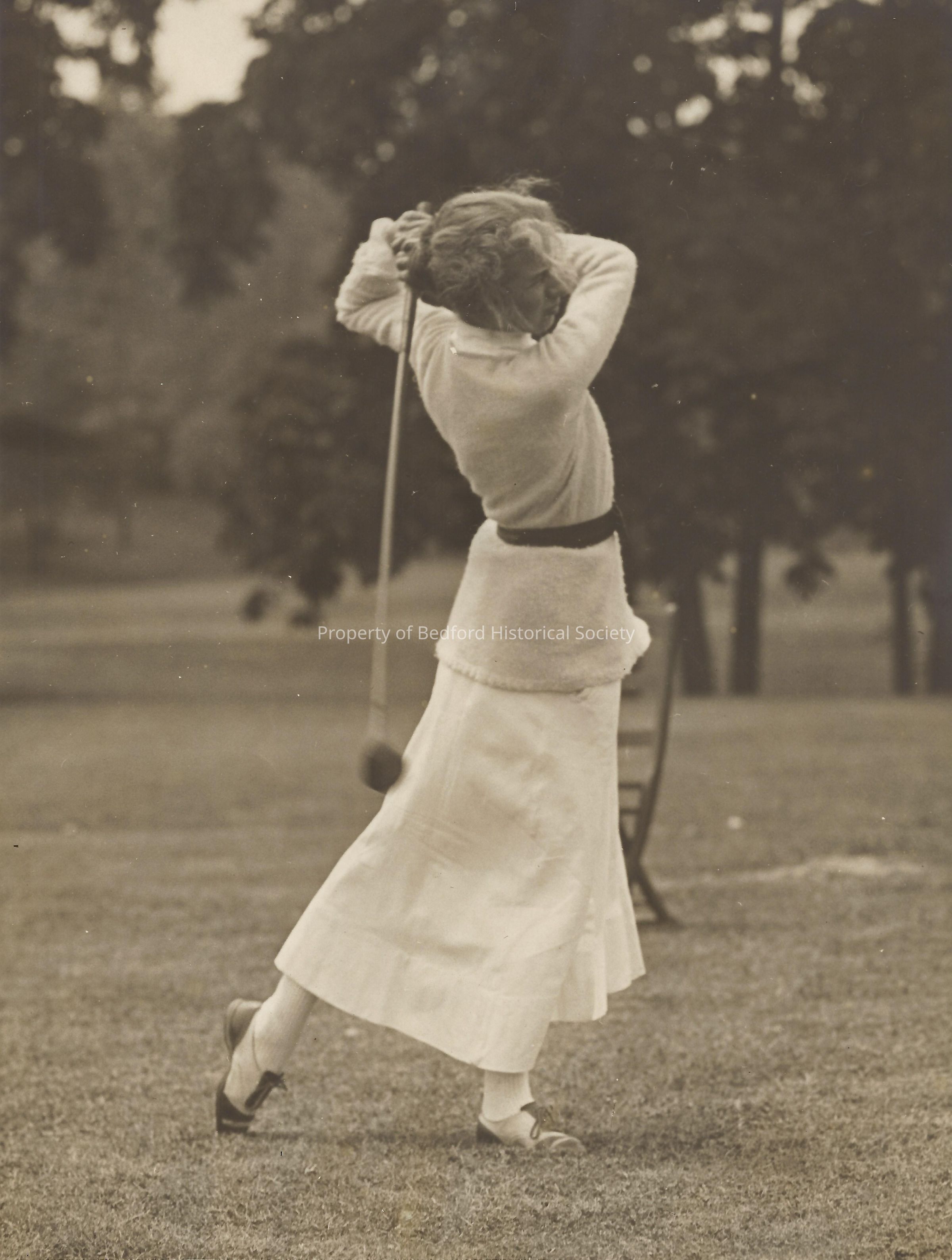 Photo of Bea Lounsbery golfing, c. 1930s, part of the Renwick scrapbook