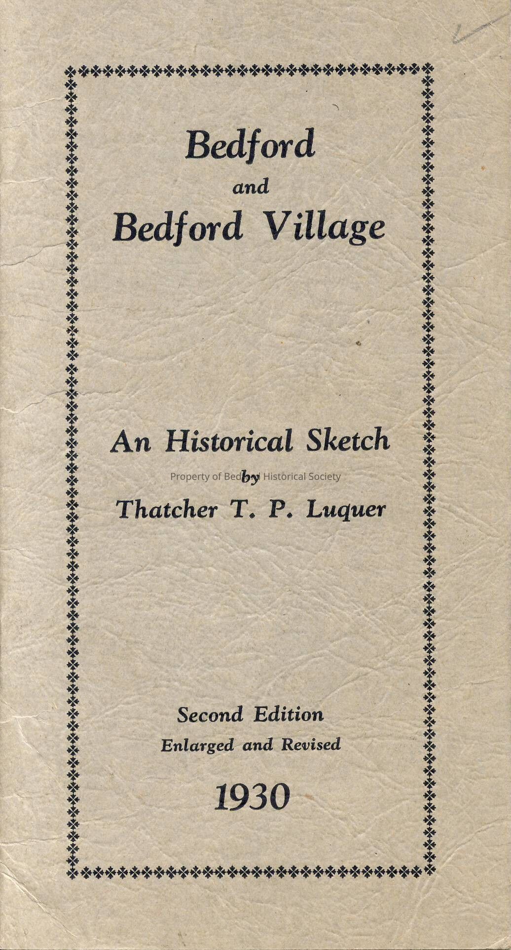 Bedford and Bedford Village, An Historical Sketch. Second Edition 1930. Written by T.P Luquer