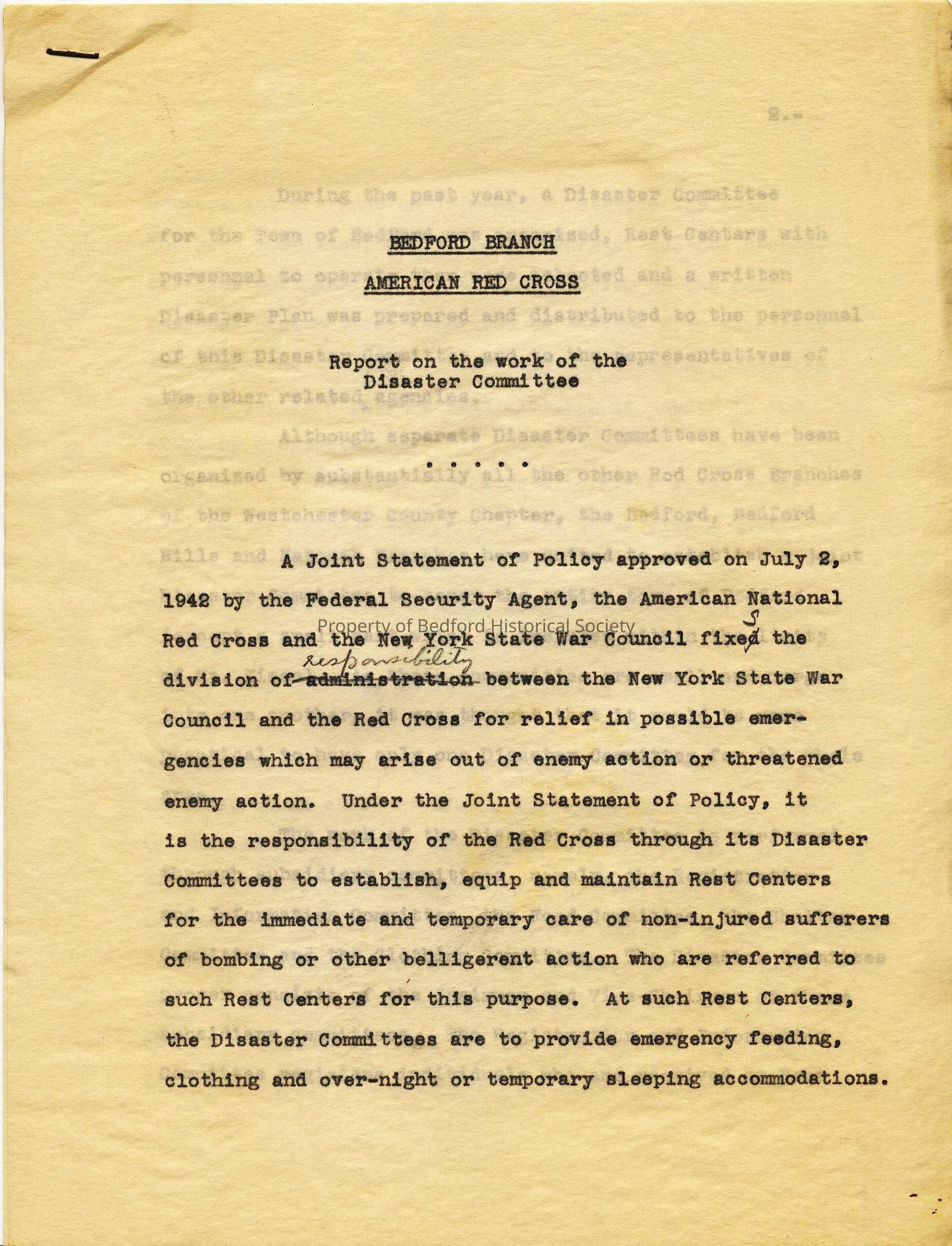 Bedford Branch American Red Cross: Report on the work of the disaster committee, 1943 by J.W. Husted