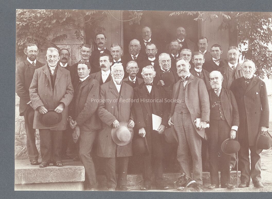 B + W Photo: Meeting of the Bedford Farmers' Club at the home of James Wood October 8, 1902.