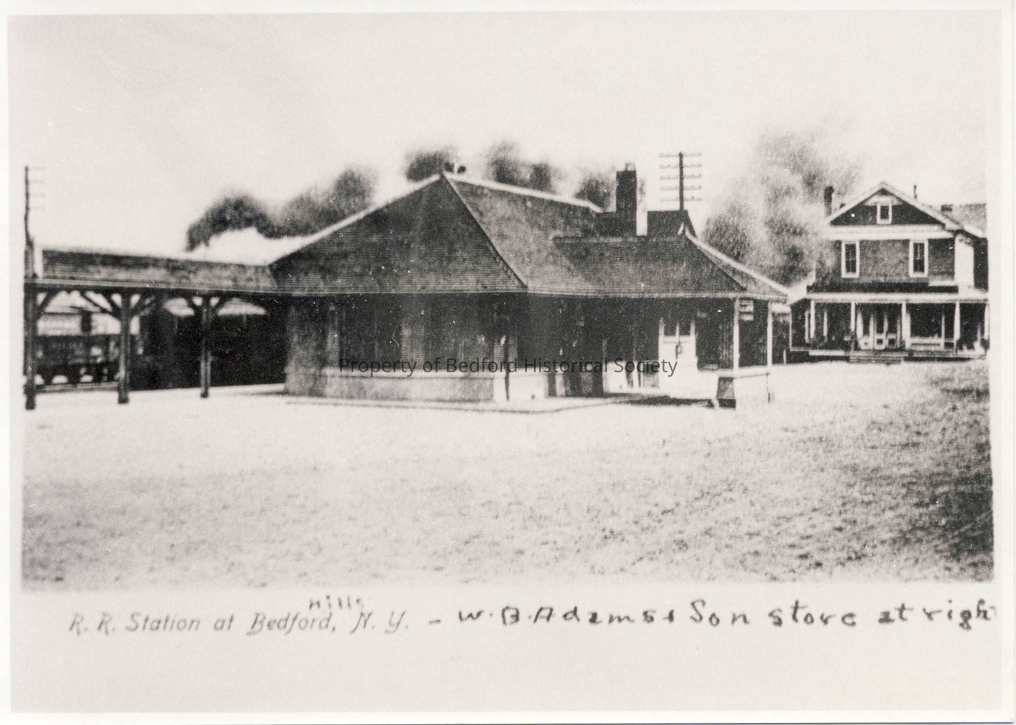 Bedford Hills Railroad Station, W.B. Adams & Son store at right.