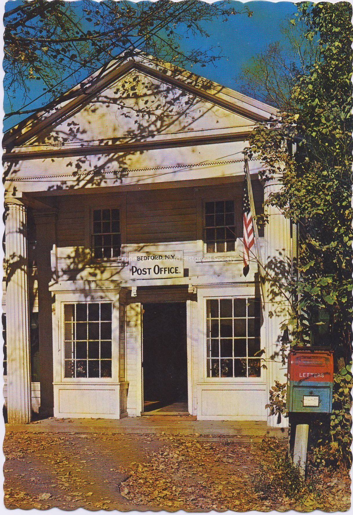 Color Postcard of the Bedford Post Office mailed to Mr. and Mrs. Donald W. Marshall in December 1971. Message: Sandra, Richard, the Girls. Xmas, Peace.