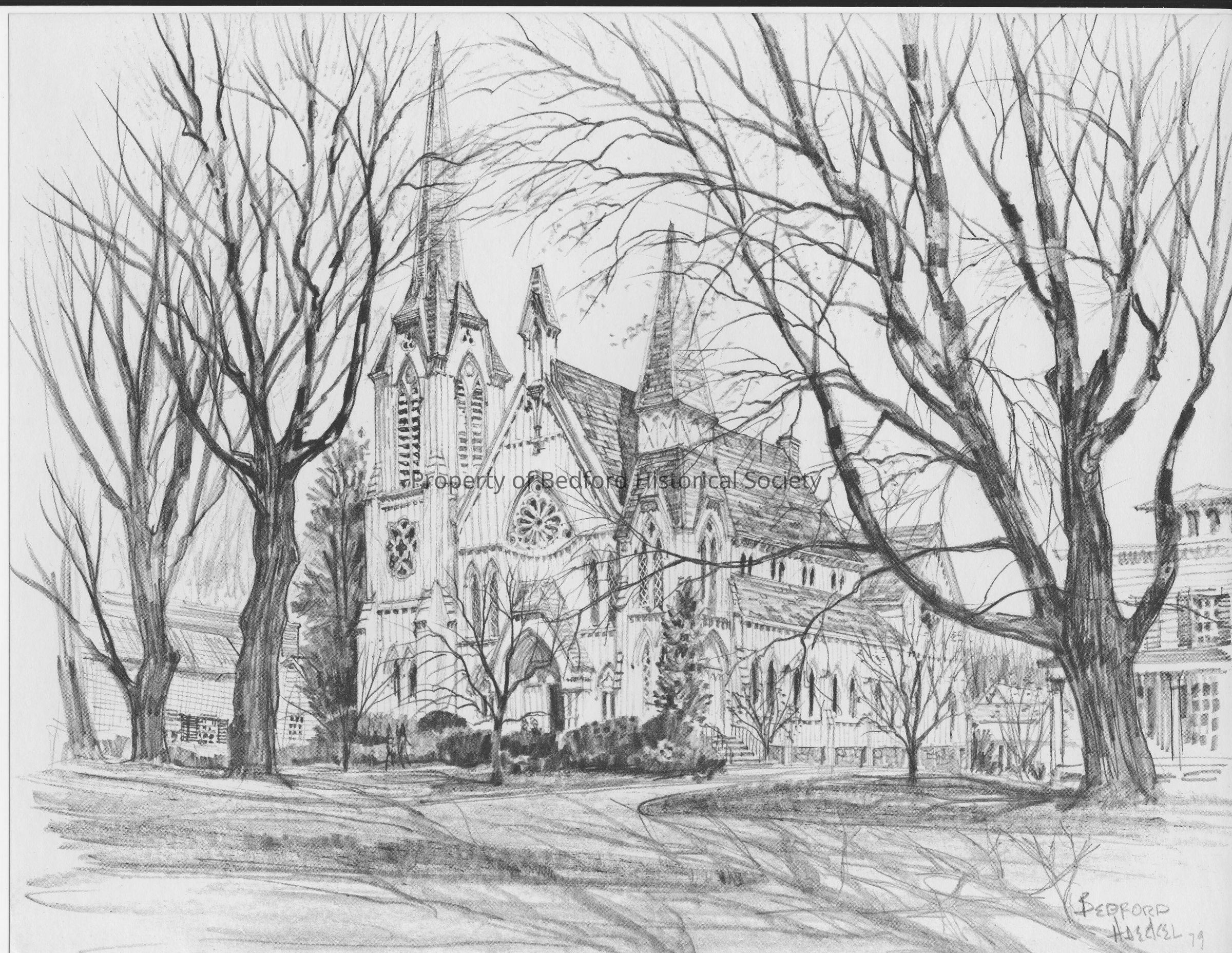 Church-Bedford by Lester C. Haeckel c.1979. Bedford Presbyterian Church.