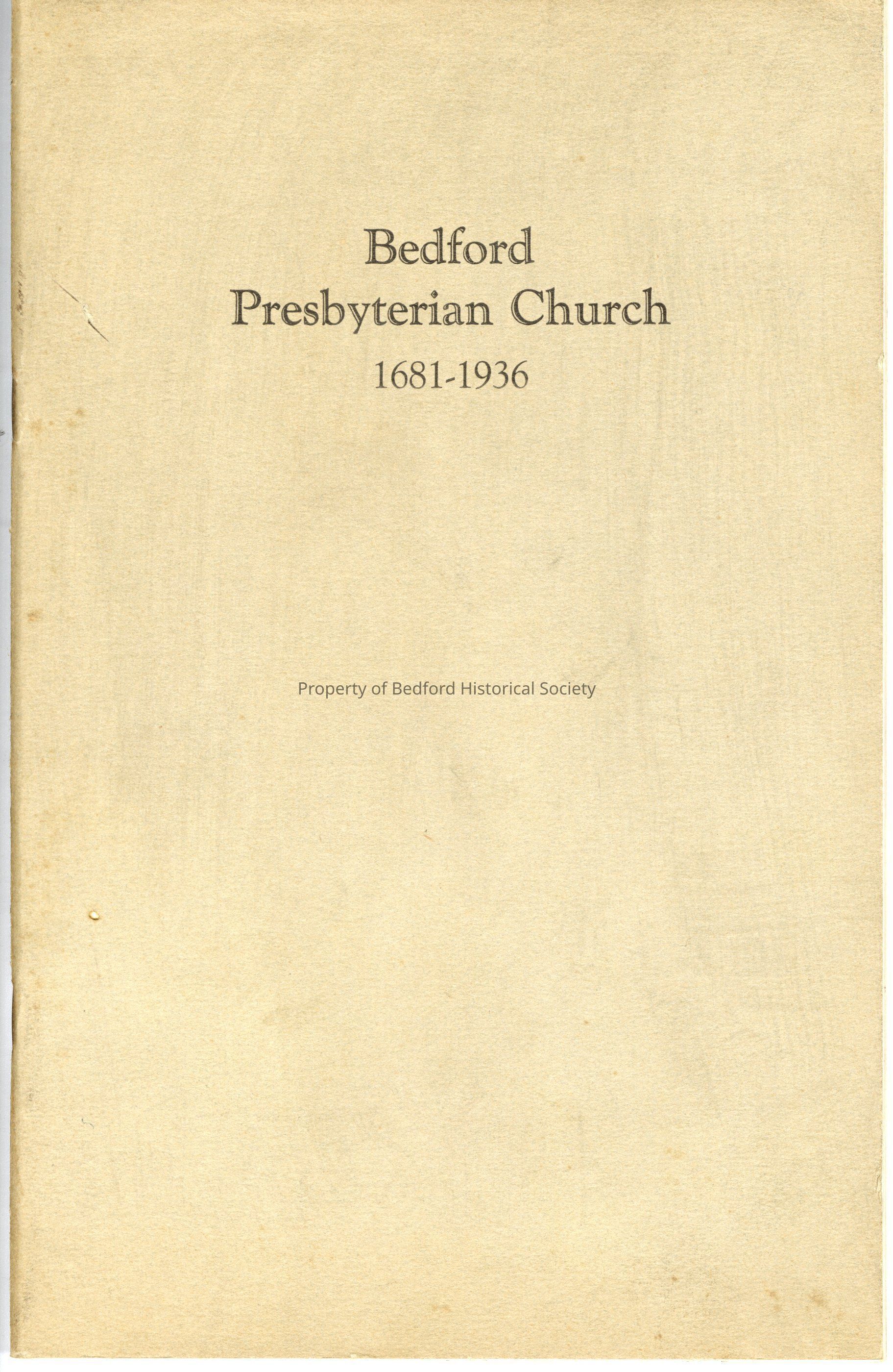 Bedford Presbyterian Church 255th Anniversary Booklet